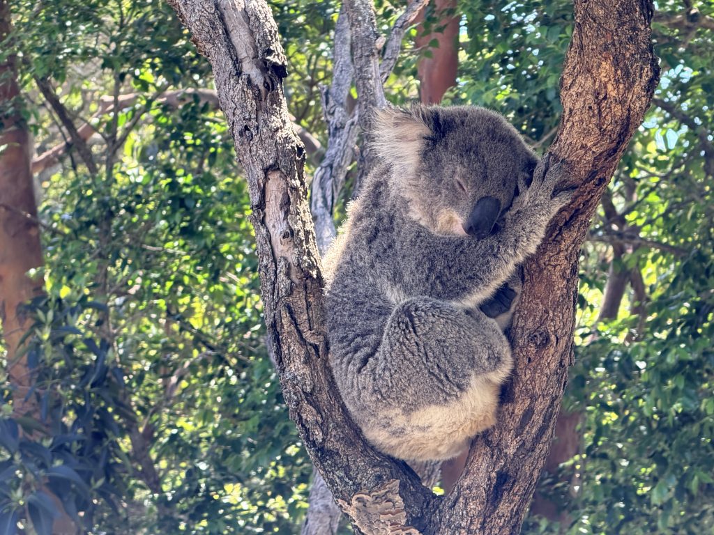 A little farther on, we reached the koala area. Most of them were clinging to the tree branches like carefully placed plush toys, motionless and completely detached from the world. Koalas sleep up to twenty hours a day, waking only to nibble on a few eucalyptus leaves before drifting off again. Watching them slowly curl up among the leaves, breathing softly with half-closed eyes and their tails gently swaying in the breeze, it felt as if time itself had slowed down.