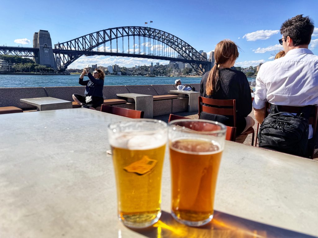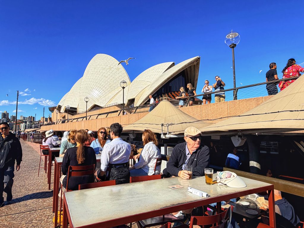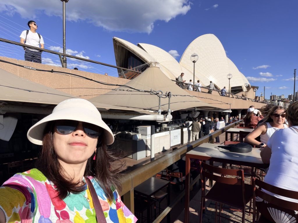 We finally sat down at the bar beneath the Opera House and enjoyed the cold beer we’d missed out on yesterday — a perfect way to make up for that regret. Sitting by the water, we watched the crowds come and go, ferries gliding across the harbor, and a massive cruise ship slowly departing the pier, its horn echoing over the waves. I leaned against the railing, taking photos of the seagulls circling overhead, savoring the gentle sea breeze. Just as I was thinking how perfect the moment was, something suddenly landed on me — needless to say, it was a “souvenir” from one of those seagulls.
