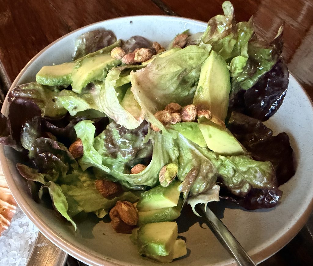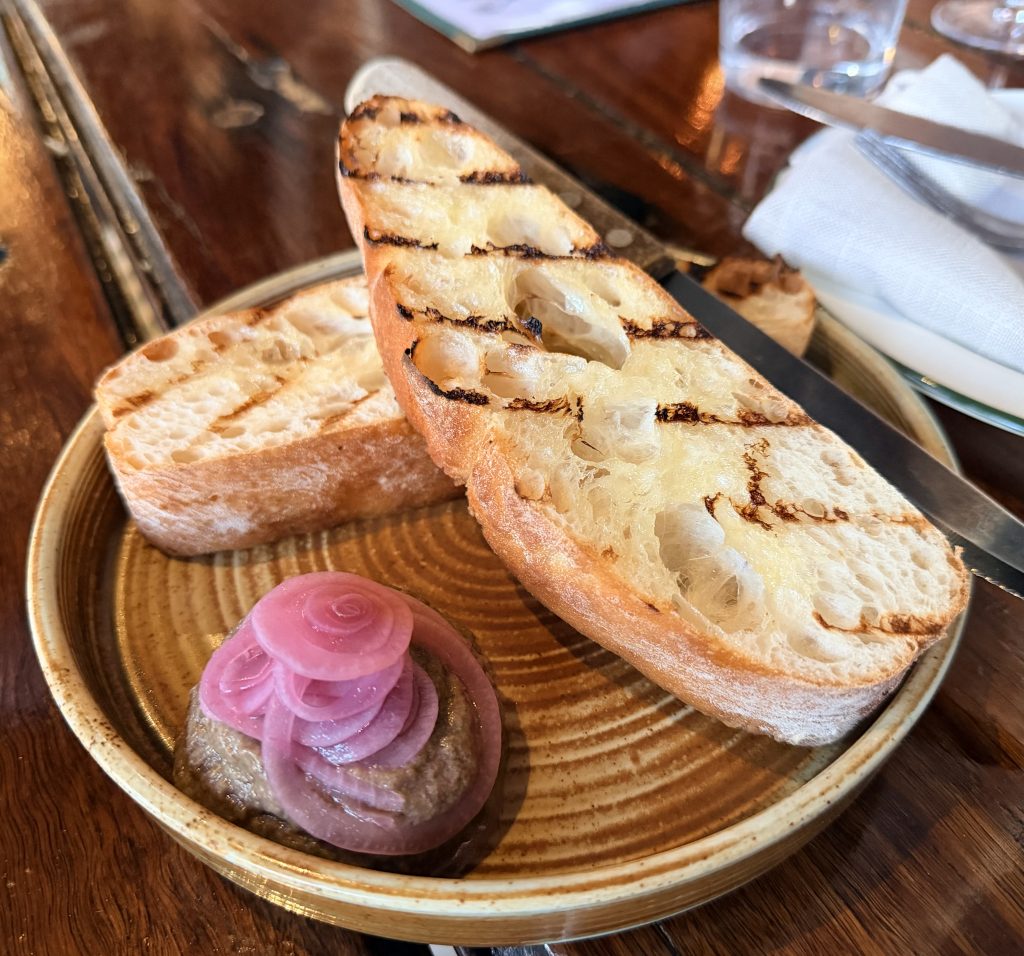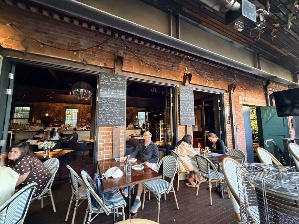 晚饭去了Surry Hills,一个充满生活气息和艺术气息的街区,遍布咖啡馆、复古小店和风格各异的餐厅。听从 ChatGPT 的推荐,我们去了那家颇有名气的澳大利亚餐厅 The Winery。这里的氛围热闹又自在,有DJ在放音乐,两位盛装的Drag Queen在和朋友们喝酒聊天,坐在庭院里,终于吃到第一顿正规的晚餐。
