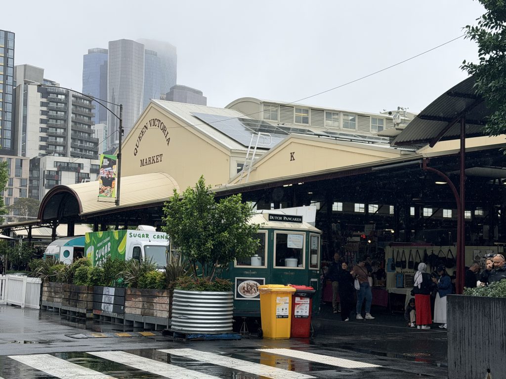 Melbourne’s “Free Tram Zone” in the city center is such a convenient feature – any tram ride within this area is completely free. In fact, Melbourne has the largest tram system in the world! We got off at Victoria Harbour and the Queen Victoria Market, taking a brief stroll around. The cold, rainy weather dampened our enthusiasm for exploring, but it did lend a certain lazy, unhurried charm to the day.
