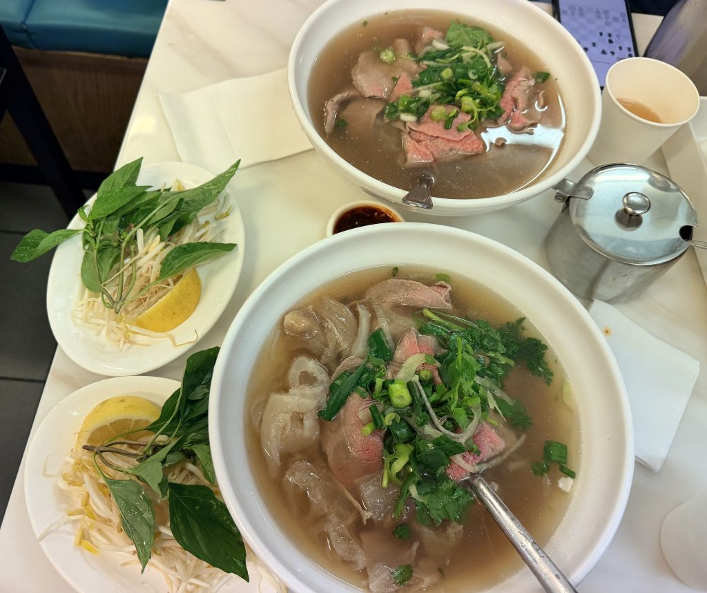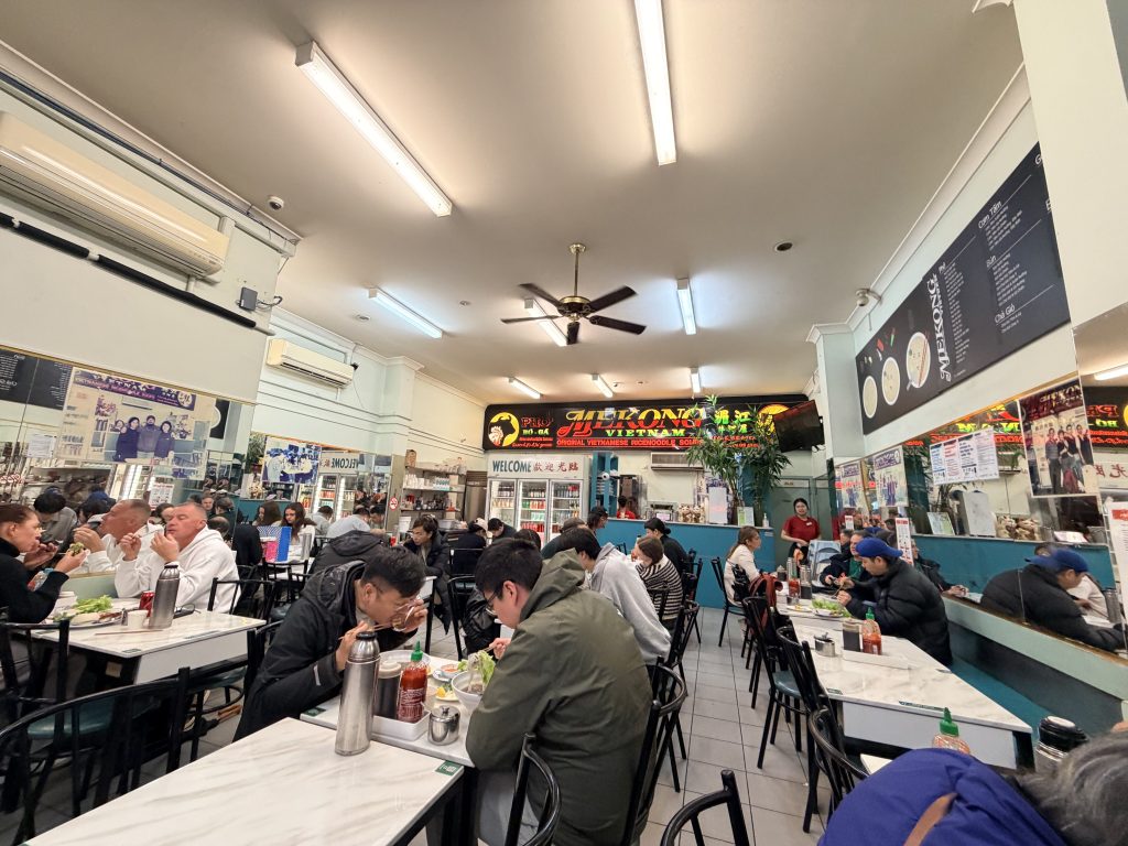 For lunch, we went to a Vietnamese pho restaurant. The reason was simple – the sign in the window said, “President Bill Clinton had two bowls…” In fact, he never actually visited this place. However, there were pictures of Jackie Chan and other famous Hong Kong movie stars on the walls. Still, the pho was excellent—18 Australian dollars a bowl, generous in portion, rich in broth, and the beef was tender. Much better value than in the U.S.