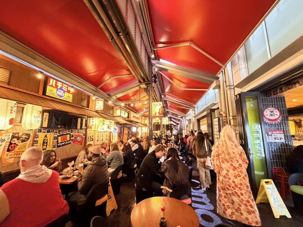 In the evening, we had dinner at a Japanese tapas restaurant called Izakaya Domo, tucked away in a laneway named Postal Lane. The alley was brightly lit and bustling with voices—the city seemed to have come back to life on this rainy evening.