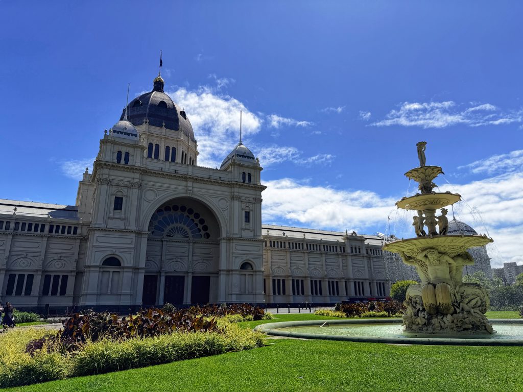 Melbourne’s weather truly lives up to its reputation for unpredictability — just as we stepped out of the cathedral, the dark clouds suddenly parted and a beam of sunlight broke through the thick sky. We quickened our pace along the park path toward the Royal Exhibition Building. Built in 1880 for the Melbourne International Exhibition, it was the first building in Australia to be inscribed on the World Heritage List. Grand and dignified, it stands quietly in the gardens like an ageless gentleman, having witnessed more than a century of change.