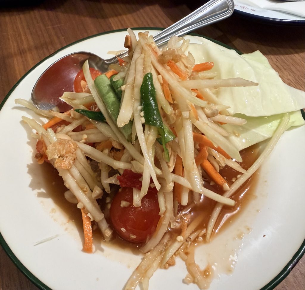 For dinner, we chose a Thai restaurant, Dodee Paidang, and finally got to try Australia’s local fish — barramundi. The flesh was delicate, and the Thai flavors were, as always, wonderfully satisfying. One surprise: restaurants in Melbourne add a 10–15% surcharge on Sundays and public holidays. Last night’s Japanese restaurant had added 10% too, though we hadn’t noticed at the time — today our server confirmed it clearly.