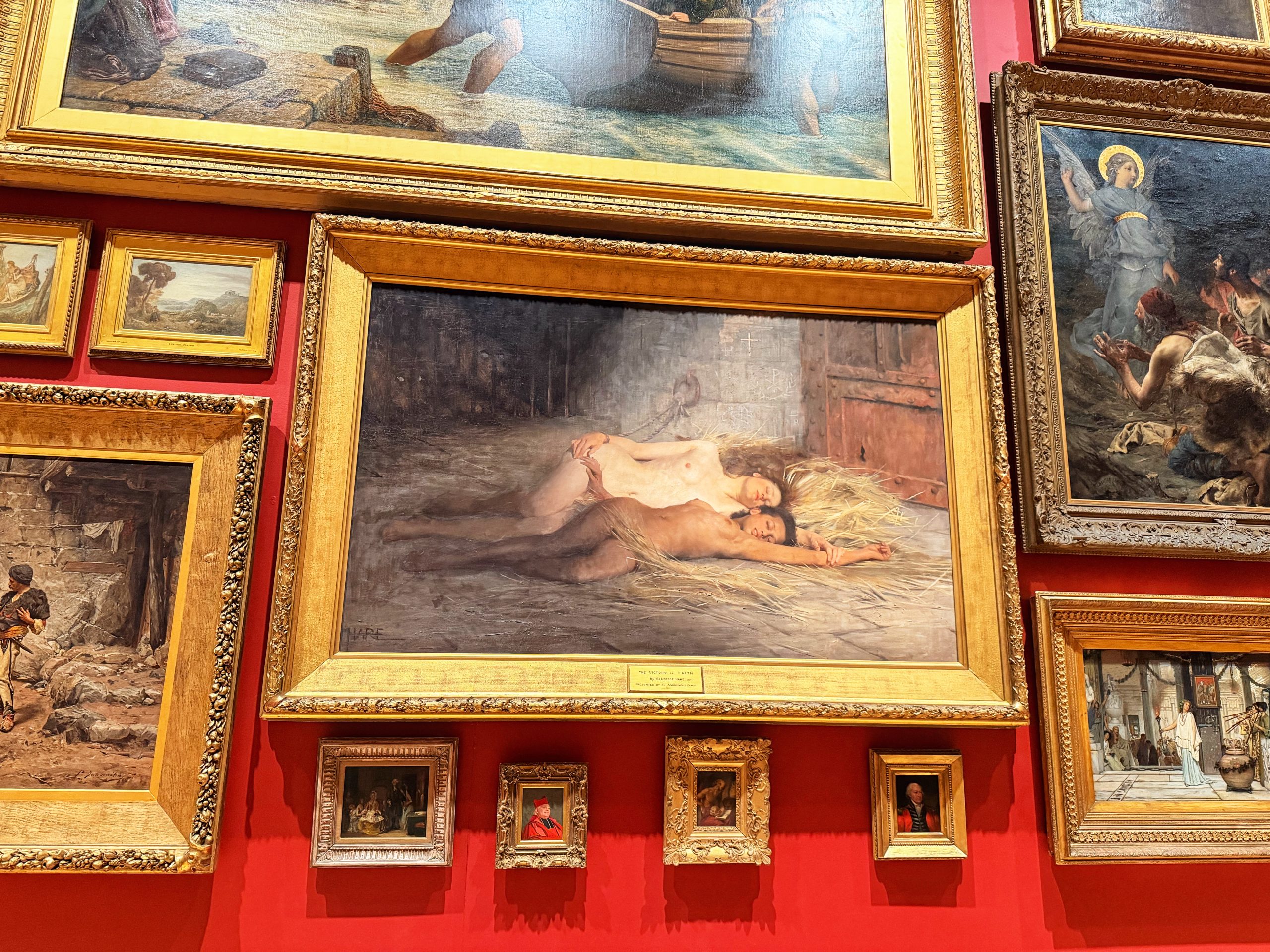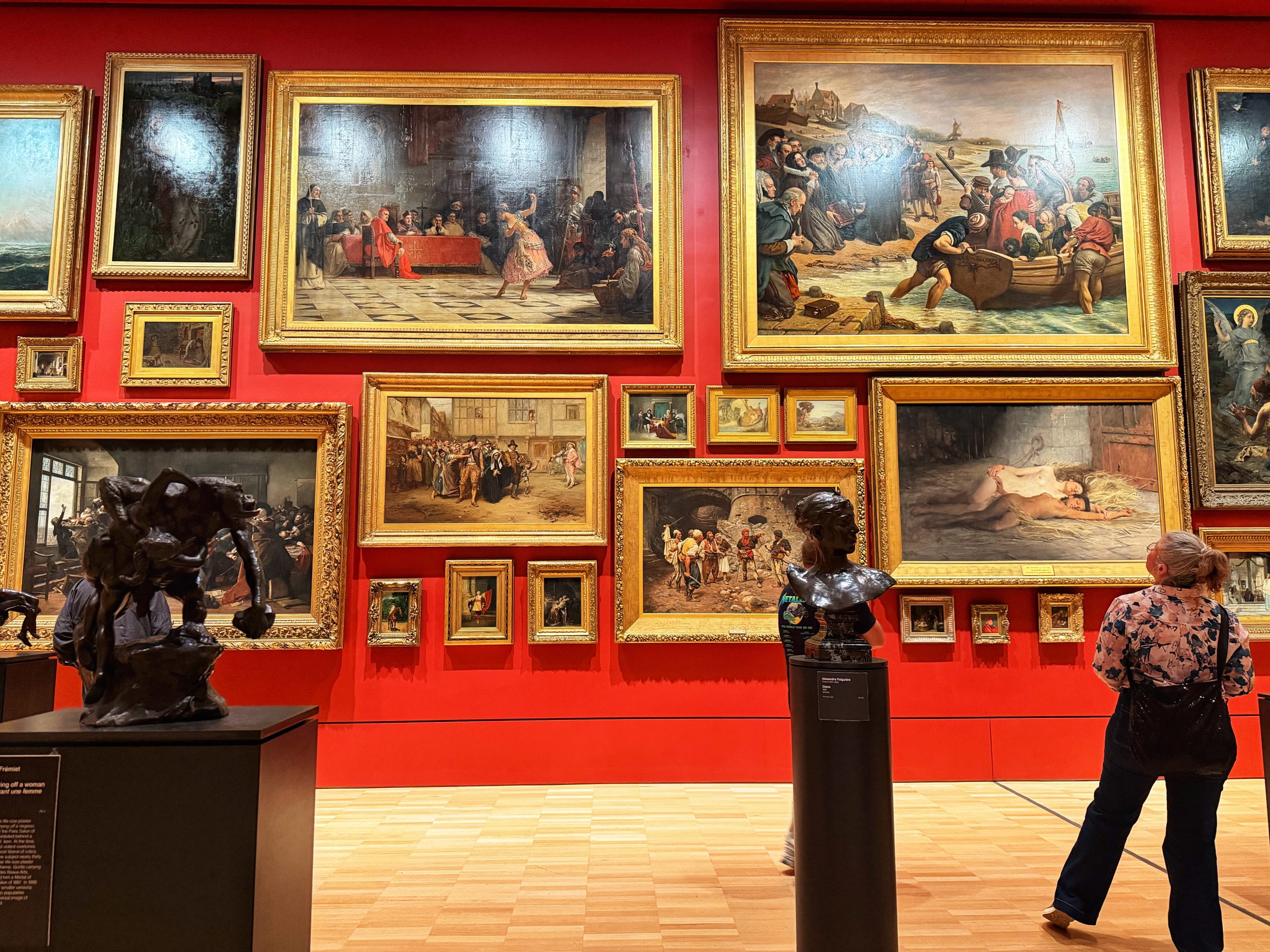 Not finding any Australian exhibits, we mainly viewed European and Asian artworks, ranging from classical oil paintings to modern art. We lingered the longest in the European gallery, captivated by the colors and details of the realist paintings, while soft piano music played in the background, filling the space with a romantic atmosphere. The Asian gallery featured many modern pieces, including traditional artwork from China, Japan, and Southeast Asia.