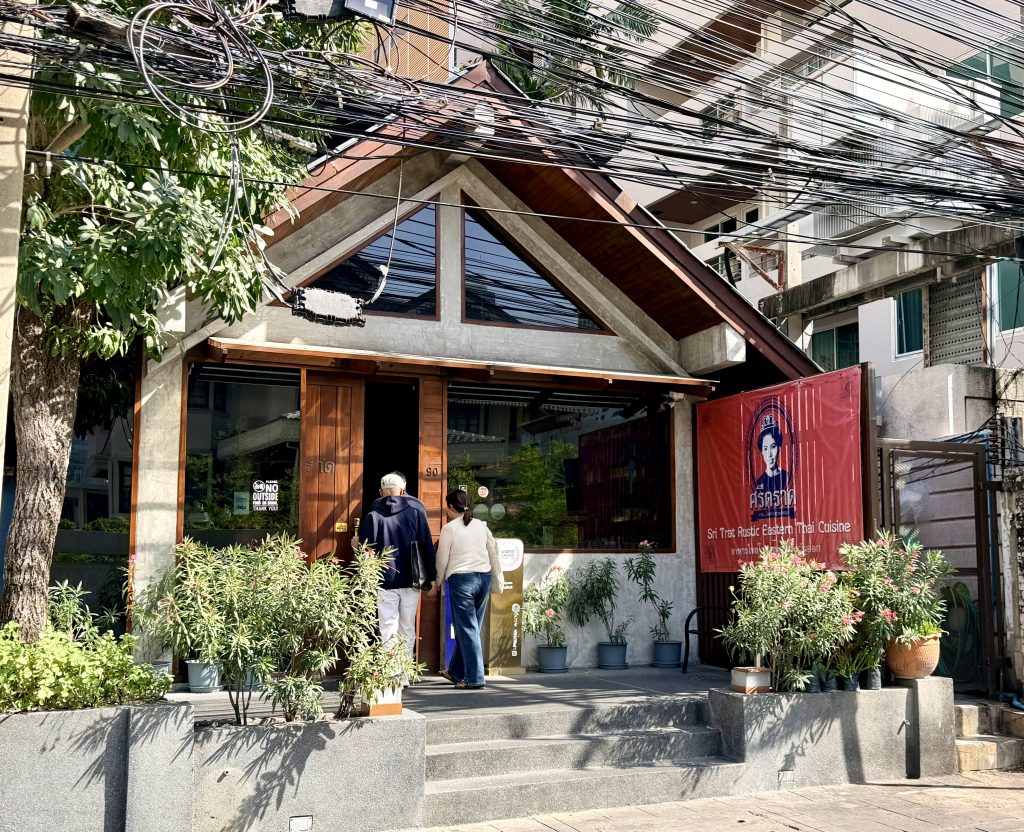 In the morning we dropped our laundry off for an express wash, with the same price as in Chiang Mai — 100 baht per kilo. After returning to the hotel, we had some time to tidy up our luggage and the room. Then, a little after eleven, we called a Grab to a restaurant I’d seen on YouTube, strongly recommended by a very famous Thai chef, “Pam”. The ride immediately reminded us how bad Bangkok traffic can be — less than 10 km (6 miles) took more than an hour.