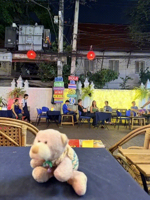 Back then, every time we went out, we had to take the building’s little private boat across the river to explore the other side. Today we took the yellow-flag boat back across to the same area, retracing the route we used to walk, and checking in on a few of the small restaurants we used to visit. Time has brought quite a few changes: the food stalls near the pier are gone, one familiar restaurant has turned into a massage shop, and only Jack’s Bar is still there—looking just the way it did back then.