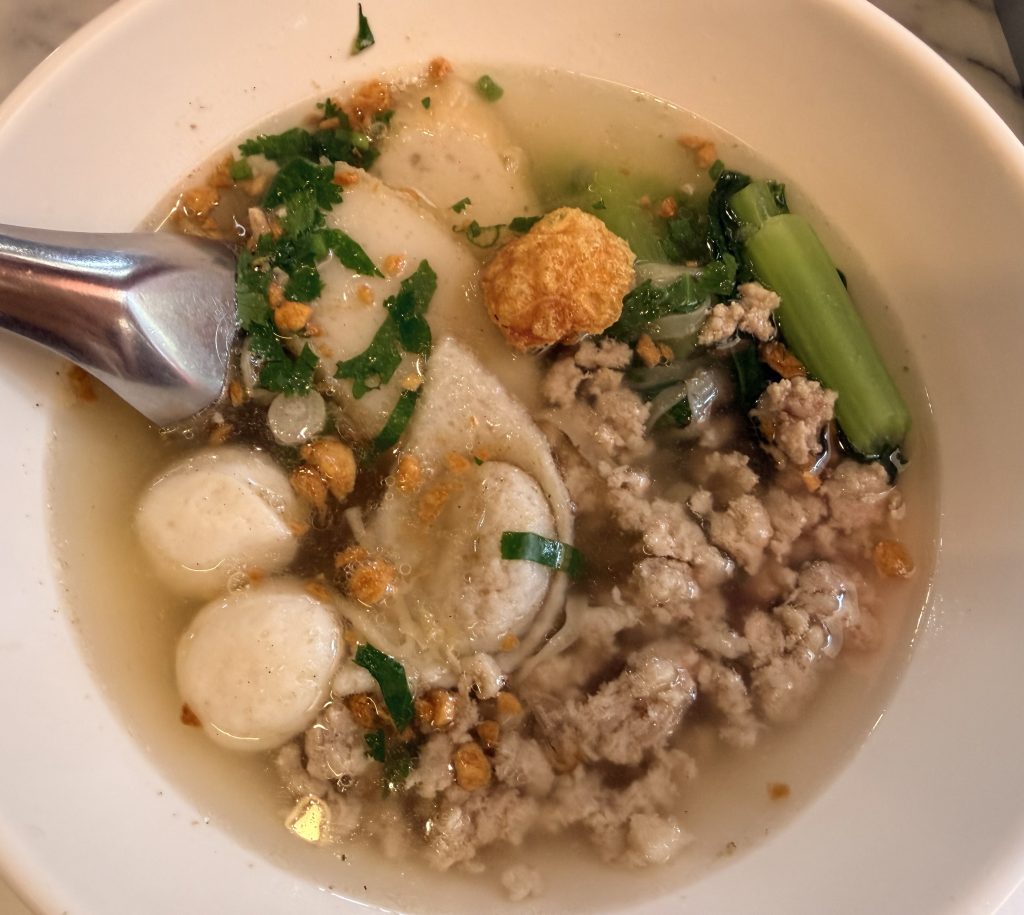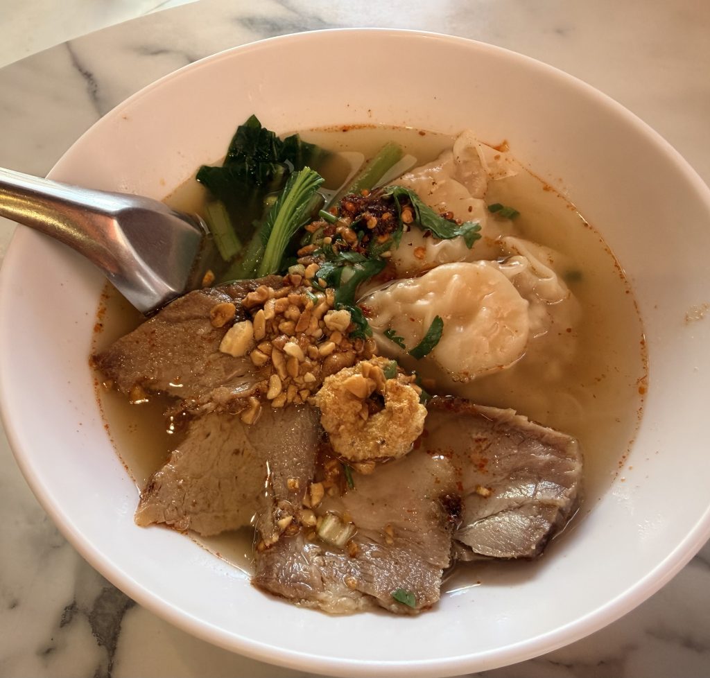 午饭选了一家名字颇有迷惑性的店,叫“大饺子”,结果菜单上都是各种面条,不知道为什么要取这么一个名字。好在两碗面都相当可口,价格也很亲民,两碗面加一瓶可乐,一共 189 泰铢,吃得满足又不心疼钱包,哈哈。