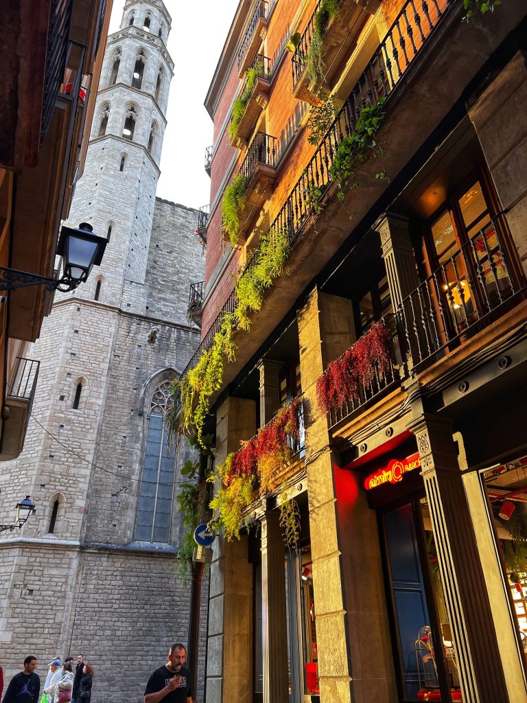 It’s finally sunny today. We didn’t leave until after 11 when we headed up to the roof of our hotel to take a look around. From there we could see the world-famous Sagrada Familia in the distance. Unfortunately, given our shortened visit, we don’t plan to go there this time, we’ll wait until we come back in May. Later we strolled around the Gothic Quarter.