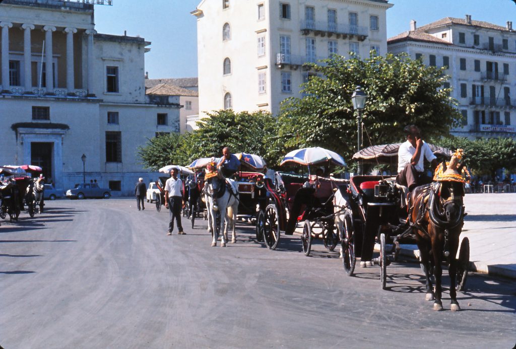 这张照片背景中的左边的建筑是科孚岛法庭. The building on the left in the background of this photo is the Corfu court taken in 1967.