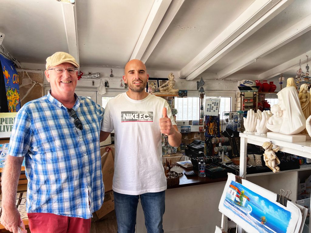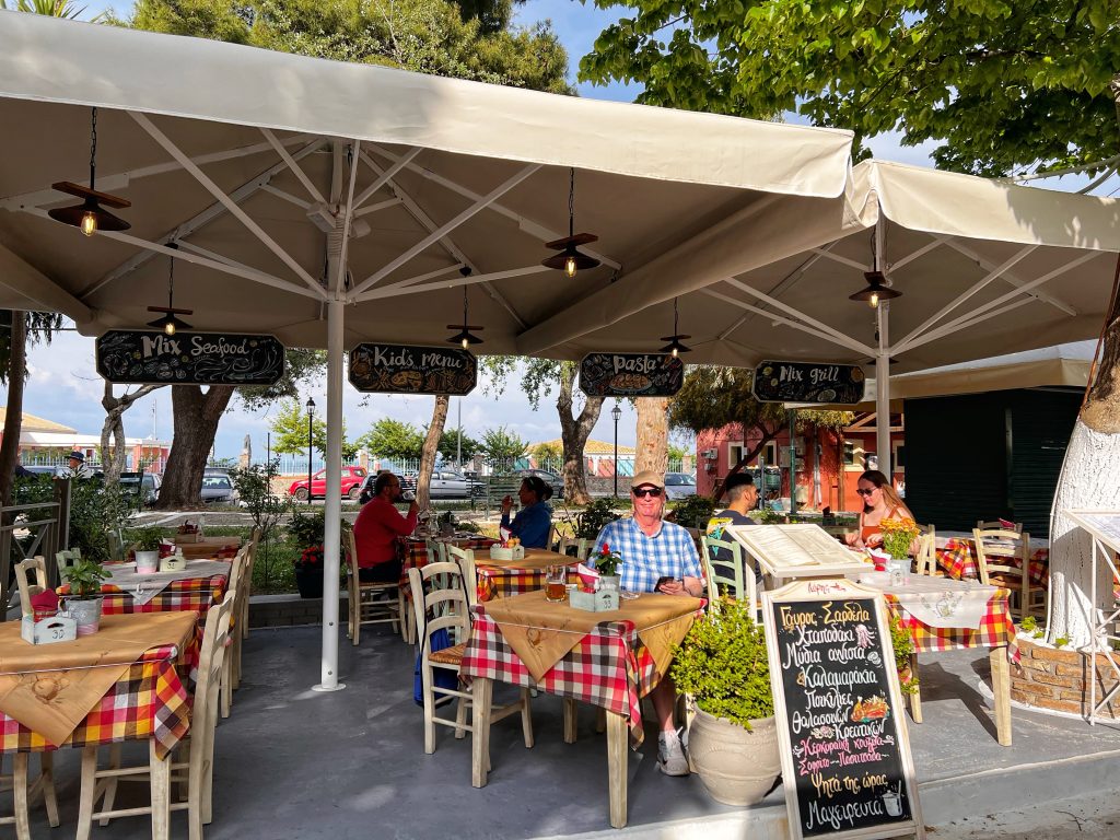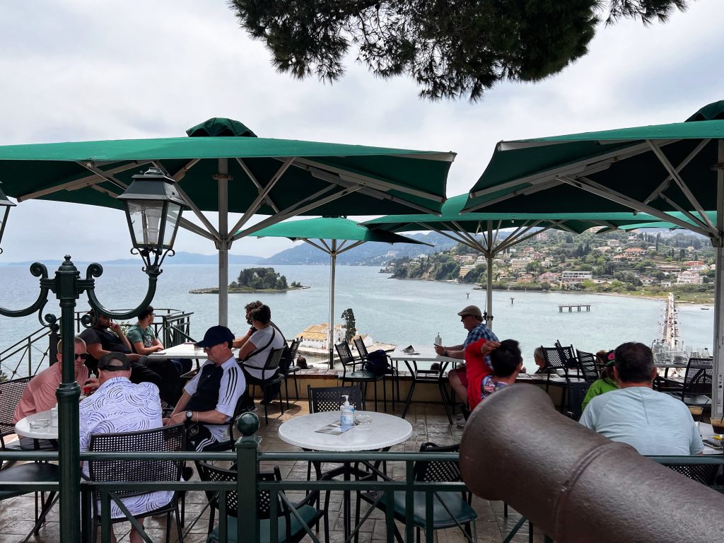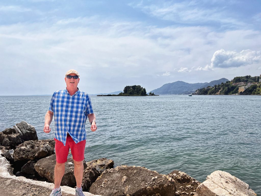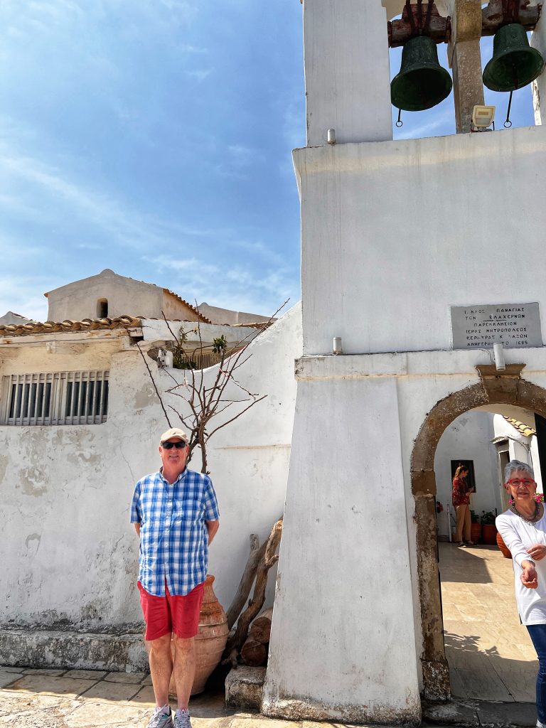 The second destination is around the old town of Corfu, the background in this photo below is the old fortress at the edge of the old town. The fortress was built by the Venetians in the 15th century. In the photo below is PJG’s brother, Brian. Maybe only Brian would sit still for a photo?
