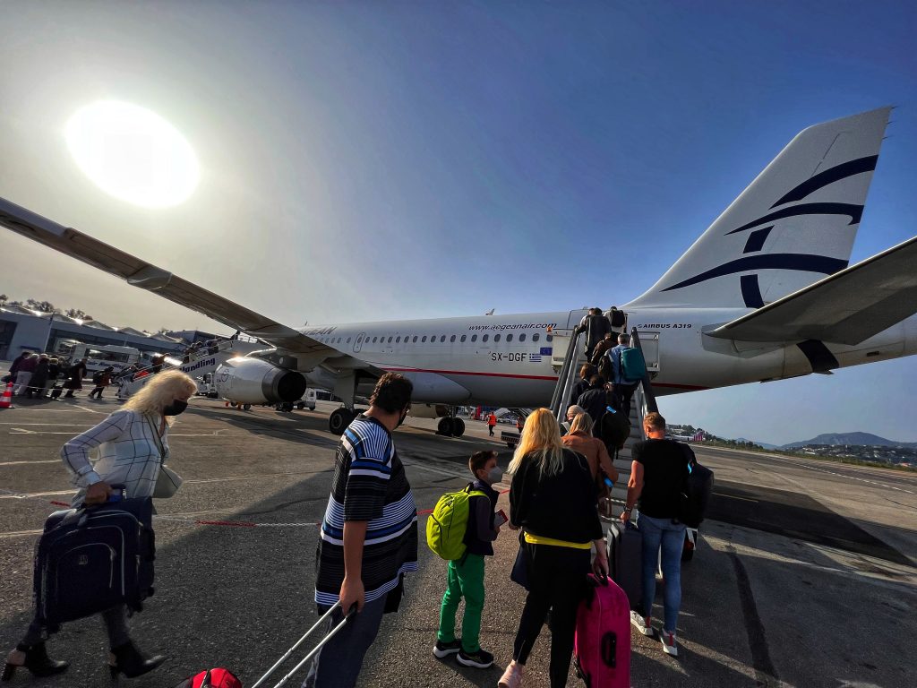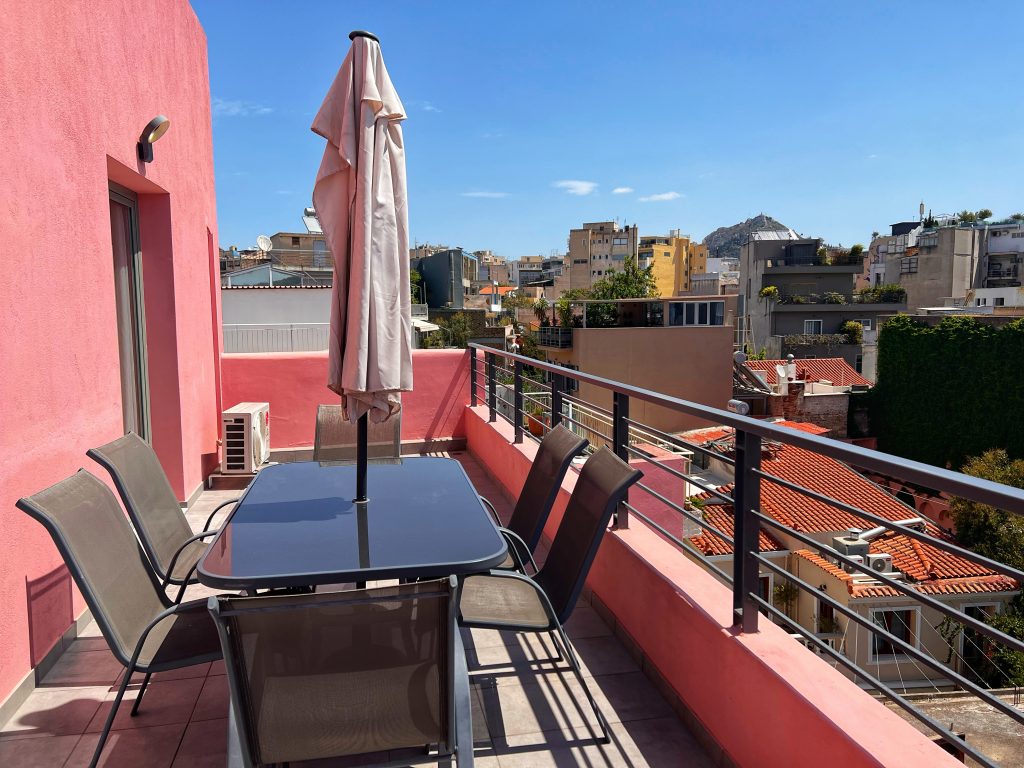 We got up bright and early this morning at 5am, the sun still hadn’t risen, to get ready to check out and head to the airport. I went to the hotel’s buffet breakfast to pick up four croissants for breakfast then we went to the airport to return the car and check-in for our 9am short flight to Athens. Very easy.