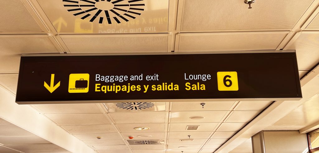 After arriving at the Madrid Airport in the morning, the two of us took a closer look at the signs for baggage claim that confused us last night. Next to “claim baggage and exit”, there is the word “Lounge 6.” It turns out the word “Lounge” is the key information that differentiates the many baggage claim areas. Yesterday, the baggage claim area for our airline was “Lounge 2”, which we never heard. Why is this airport arranged this way? And why do they use the word “lounge”? So misleading!