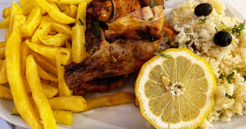 PJG的烤鸡. PJG’s Roast half-Chicken – note the rice and fries again…