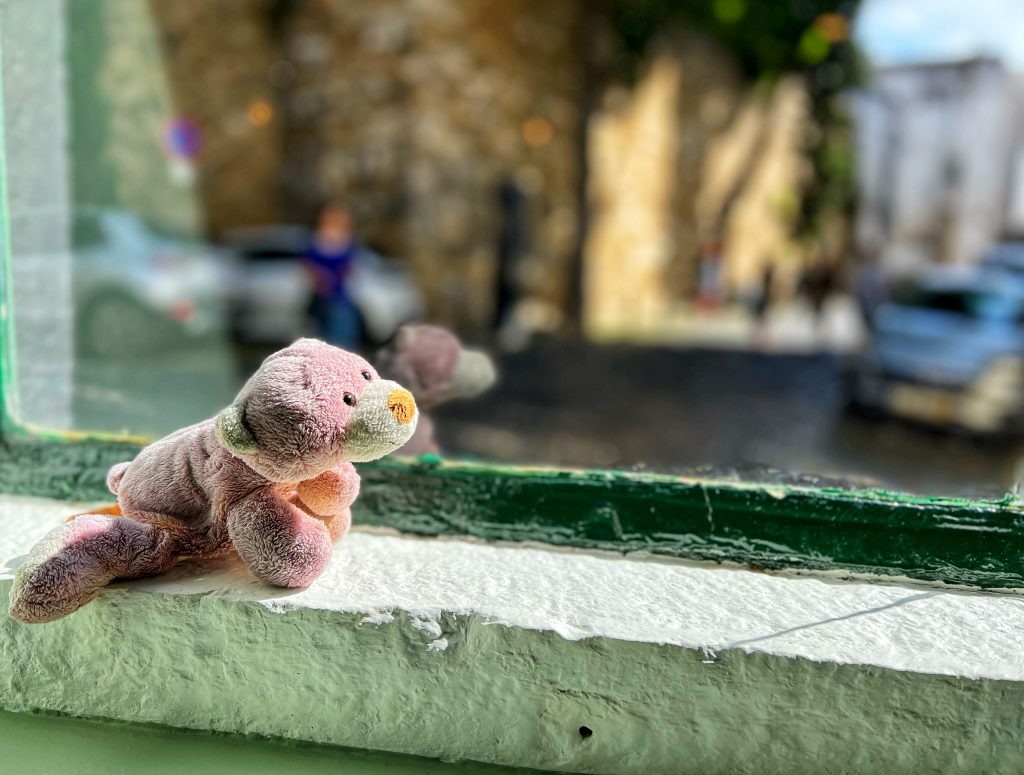 我俩吃蛋挞的时候,小熊看风景. While we were eating our Pastel De Nata, bear watched through the window.