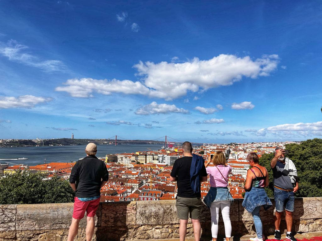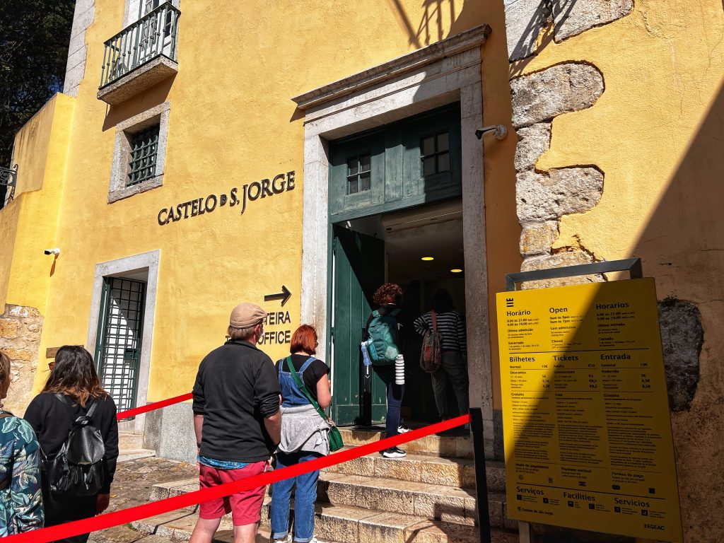 圣乔治城堡买票,每人10欧元. Tickets for the Castle of St. Jorge, 10 euros each.