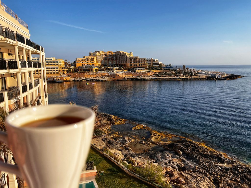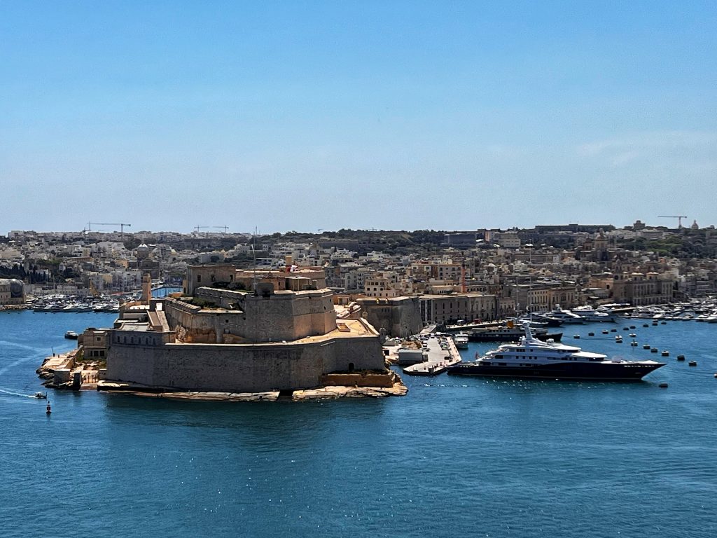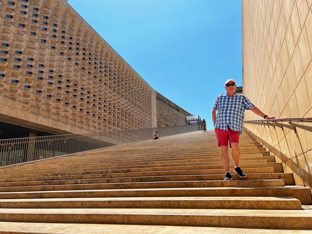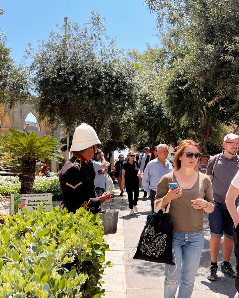 早茶和冥想 Morning tea and meditation小熊也来享受这个清晨和冥想 The Bear also came to enjoy the morning and meditate.免费的自助早餐,品种相当丰富 Free buffet breakfast with a wide variety of dishes.在公交车站等车. Waiting for the bus to Valletta瓦莱塔城门,现在这个大门是该遗址上的第五座大门,建于 2011 年至 2014 年间,由意大利建筑师伦佐·皮亚诺设计。The Valletta City Gate, now the fifth gate on the site, was built between 2011 and 2014 and designed by Italian architect Renzo Piano.Tritons喷泉,位于瓦莱塔城门外的喷泉 The Tritons Fountain, just outside of the gates of Valletta马耳他国会大楼和它旁边的阶梯,很多网红都来这里拍照片 The Maltese Parliament Building and the stairs next to it, many famous Instagram photos are taken here.胜利圣母教堂,前身为圣安东尼修道院院长教堂, 是瓦莱塔建成的第一座教堂和建筑。The Church of Our Lady of Victory, formerly known as the Church of St. Anthony the Abbot, was the first church built in Valletta.现在是一家旅馆 Auberge de Castille, now a hotel.圣若望主教座堂,是罗马天主教在马耳他的主教座堂之一,也是首都瓦莱塔的地标建筑之一,它是由马耳他骑士团兴建于1573年到1578年。St. John’s Cathedral is one of several Roman Catholic cathedrals in Malta and one of the landmarks of the capital. It was built by the Knights of Malta from 1573 to 1578.法国贵族让·帕里索·德·拉·瓦莱特 French nobleman, Jean Pariseau de la Valette在上巴拉卡花园看到的景色- 三个城市, 每天中午12点下面礼炮都会进行发射表演,这个礼炮发射其实有着悠久的历史,我俩正好赶上了发射,拍摄了视频 The scenery seen in the Upper Barakah Garden – three cities, every day at exactly noon, a single cannon is fired. This cannon salute actually has a long history. 三个城市之一的Vittoriosa的圣堡. 安杰洛 One of the three cities – Vittoriosa, Fort St. Angelo观看礼炮发射的游客们 Tourists watching the cannon firing.今天其实就发射了一炮,发射之后,士兵站在那里希望的到捐款,很多人都给了钱,我也给了1欧元. After the launch, soldiers stood with a bucket hoping to collect donations. Many people gave money, and I also gave a euro.下巴拉卡花园 Lower Barakah Gardens