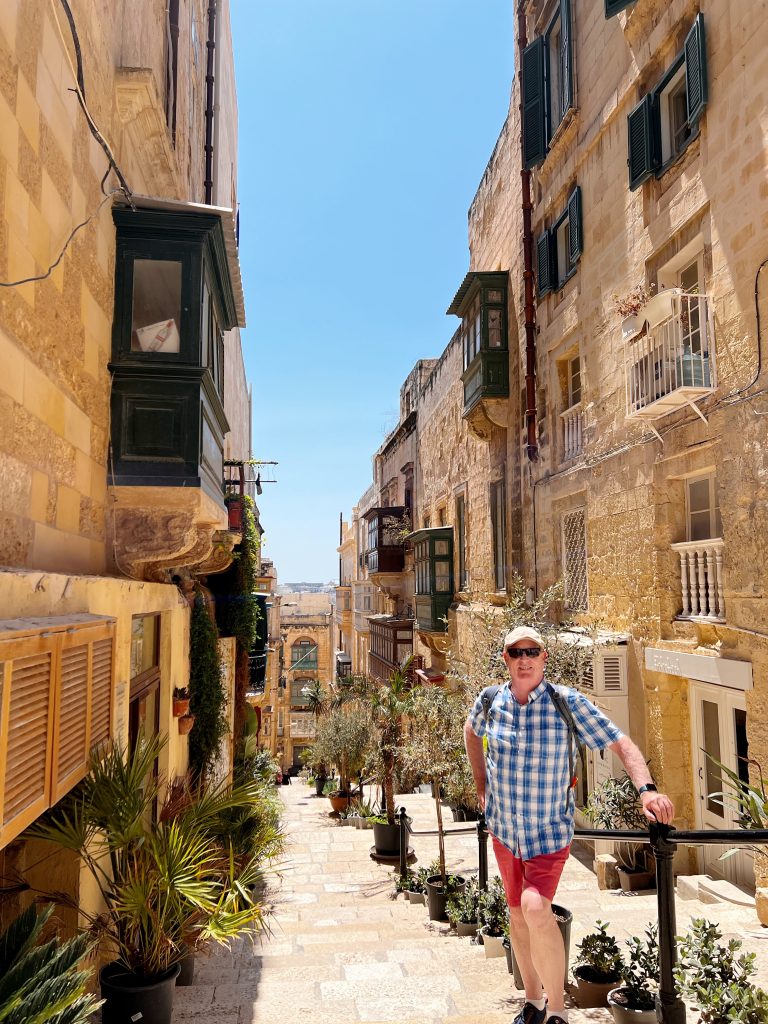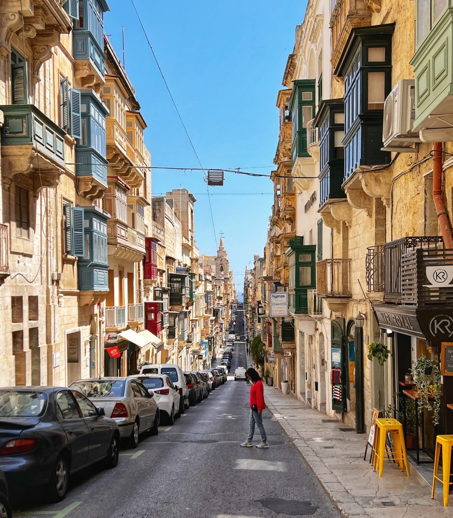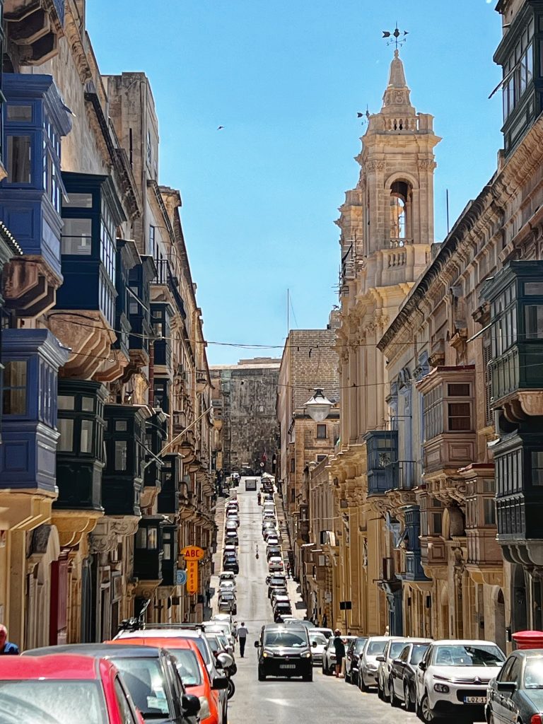 In the morning, we bought a transportation card at the bus station near the hotel. The 15 euros card gives you 12 trips saving 3 euros, more importantly, it is much easier to board the bus using the card. It takes about 30 minutes to reach Valletta from St Julian. Walking into the walled city capital of only 0.60 sq km from the city gate of Valletta, I was immediately attracted by the unique buildings. Walking through the alleys, I was completely lost in the baroque style, and the limestone light khaki colored buildings. The buildings are a dense clusters of rows of unique balconies, majestic churches, and small shops with interesting designs. Every time I turned my head I was afraid of missing some picturesque scenery.