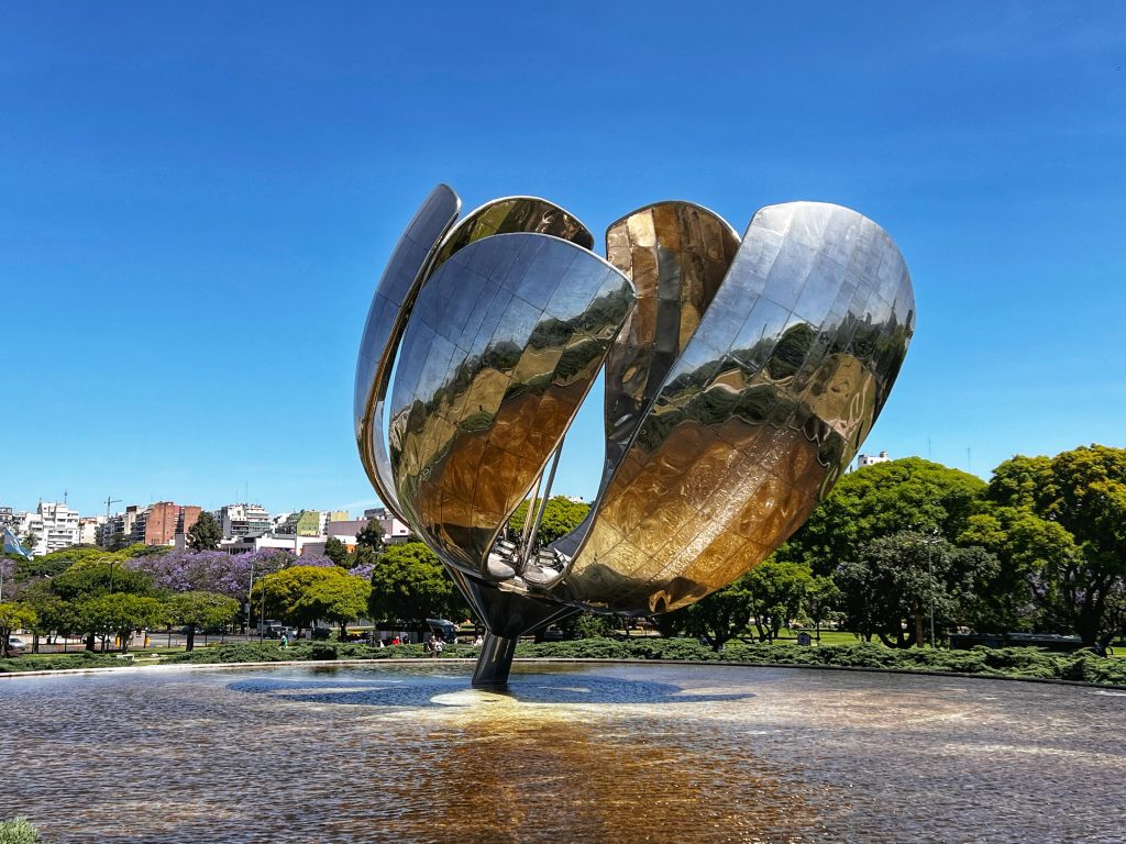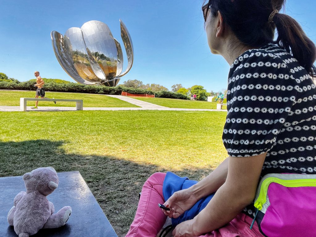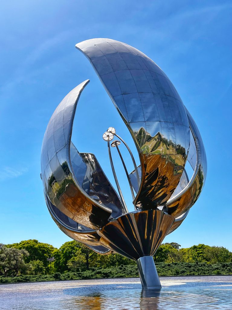 After lunch, I took the bus to see the famous landmark called “Floralis Genérica”, which is a 20-meter-high, high tech sculpture standing on the Plaza Naciones Unidas. It is made of stainless steel and aluminum and weighs 18 tons. This steel flower is a mobile sculpture controlled by a hydraulic system and photoelectric cells. There are six petals in total. The petals open during the day, and automatically open and close according to the time of day. When the flowers close at night, the interior of the flower glows red. When I went to see it, the flowers petals were not fully open. I have seen many pictures of the flower in full bloom on the Internet.