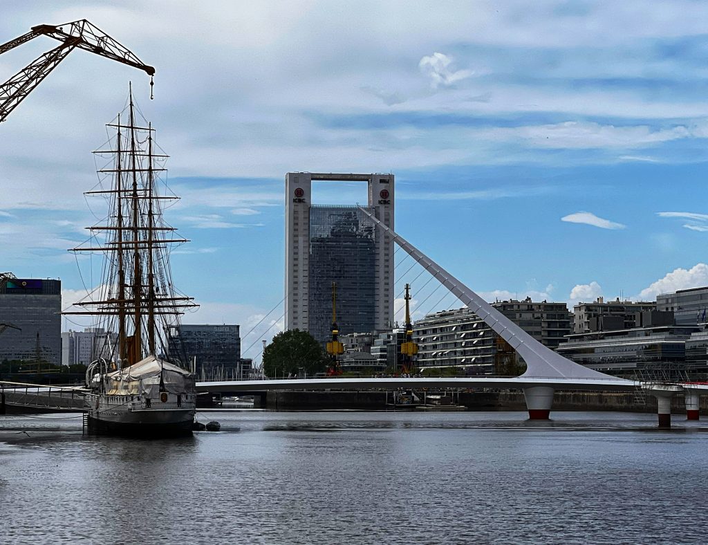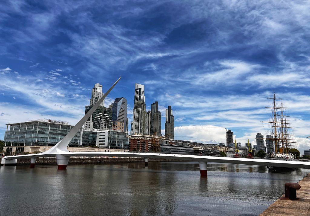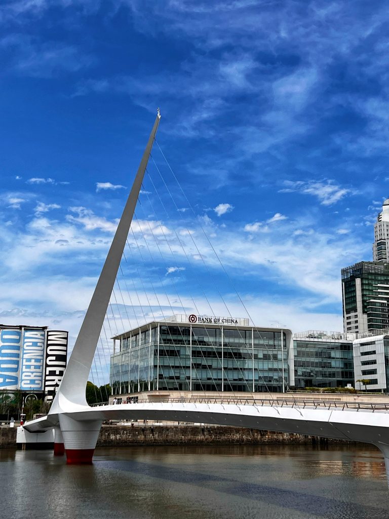 Today, again, he is going to rest at home and wait for his doctor’s call. I went to the supermarket to buy a small bag of rice and made him chicken soup and rice porridge for lunch. I ate the left over pork ribs from last night. After lunch, Bear and I took the subway to the “Women’s Bridge” (Spanish: Puente de la Mujer), which is a counterweight cable-stayed bridge designed by Spanish architect Santiago Calatrava. The design of the bridge is like a tango dance.