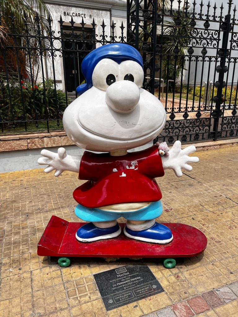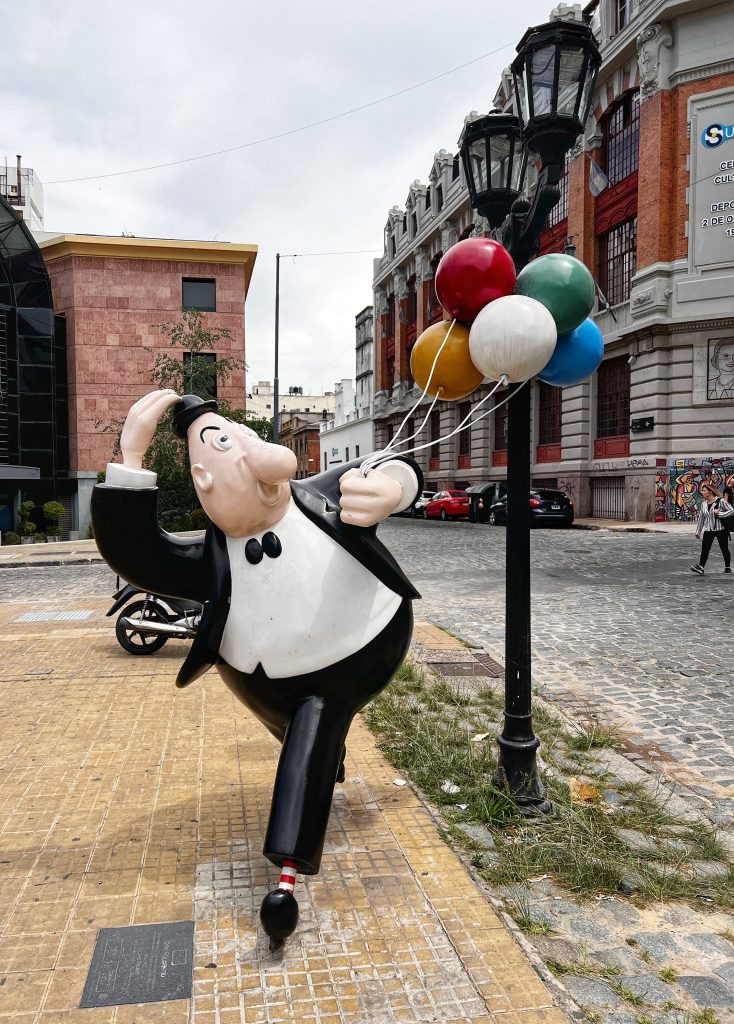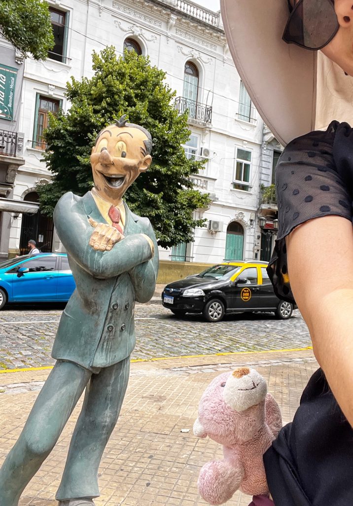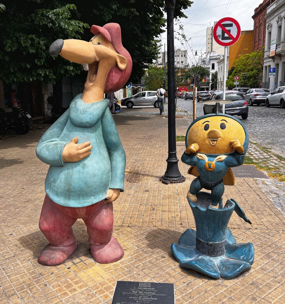 我在岸边散了一会儿步,又在周围逛了一会儿,无意间走到了漫画一条街,看到了很多应该是漫画人物雕塑。具体信息可以在这里看到 – I took a walk along the shore for a while, then wandered around some more and accidentally found myself at the comic strip street. There are a lot of sculptures of comic characters here. Details can be found here: https://turismo.buenosaires.gob.ar/en/recorrido/comic-strip-walk