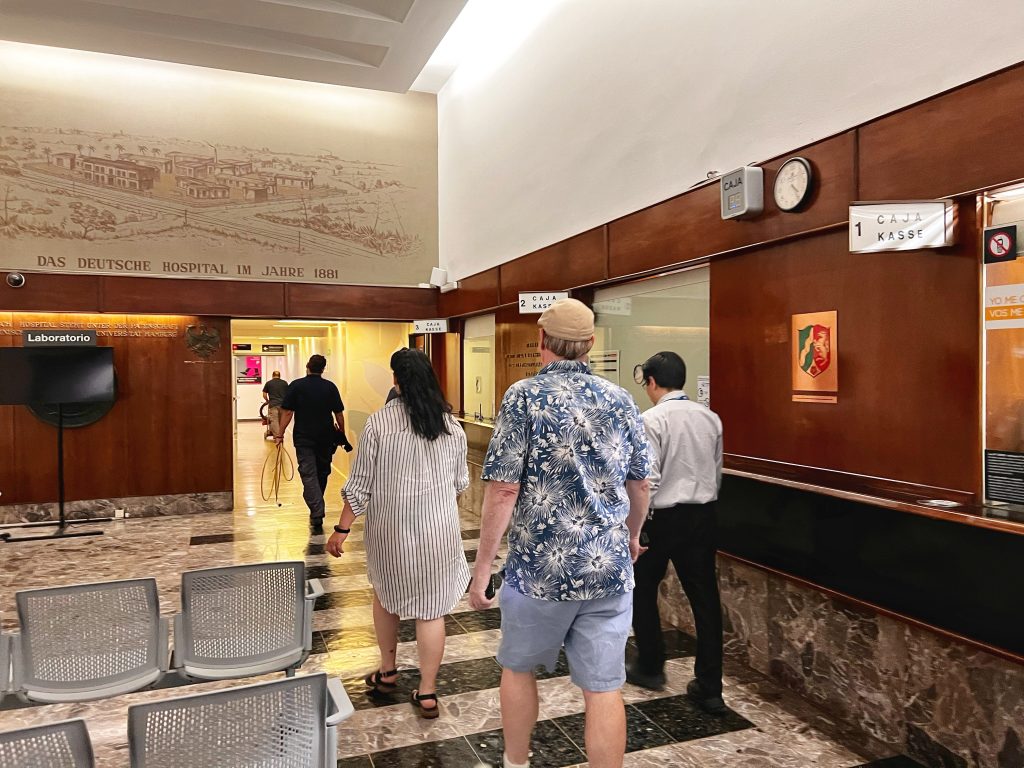 在我坐公交车回民宿的路上,PJG说他的医生给他打了电话,建议他去看这里的医生,因为泻肚子和发烧已经超过了72个小时,也许他需要吃些抗生素。我俩坐Uber去了一个Marriot 酒店建议的医院,离我俩的民宿大约17分钟的车程。在网上看到,布宜诺斯艾利斯的医疗系统比较发达,很多医生都接受过很先进的培训,而且很多公立医院都是免费的。到了这个私立医院,我俩看到一个女士,看起来她会说英文,她很友善,带着我俩先到了类似于中国挂号的地方。