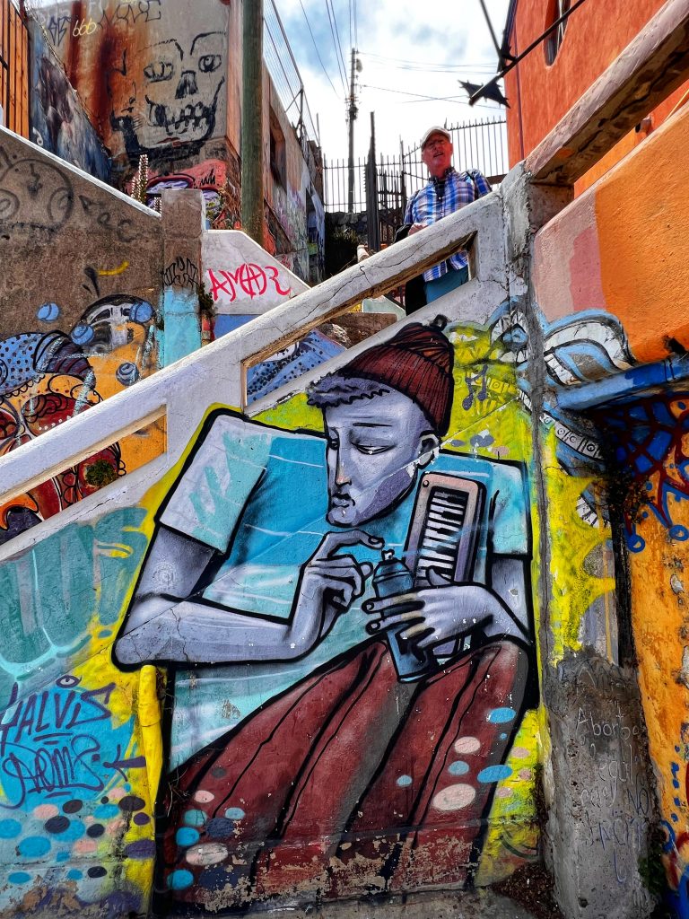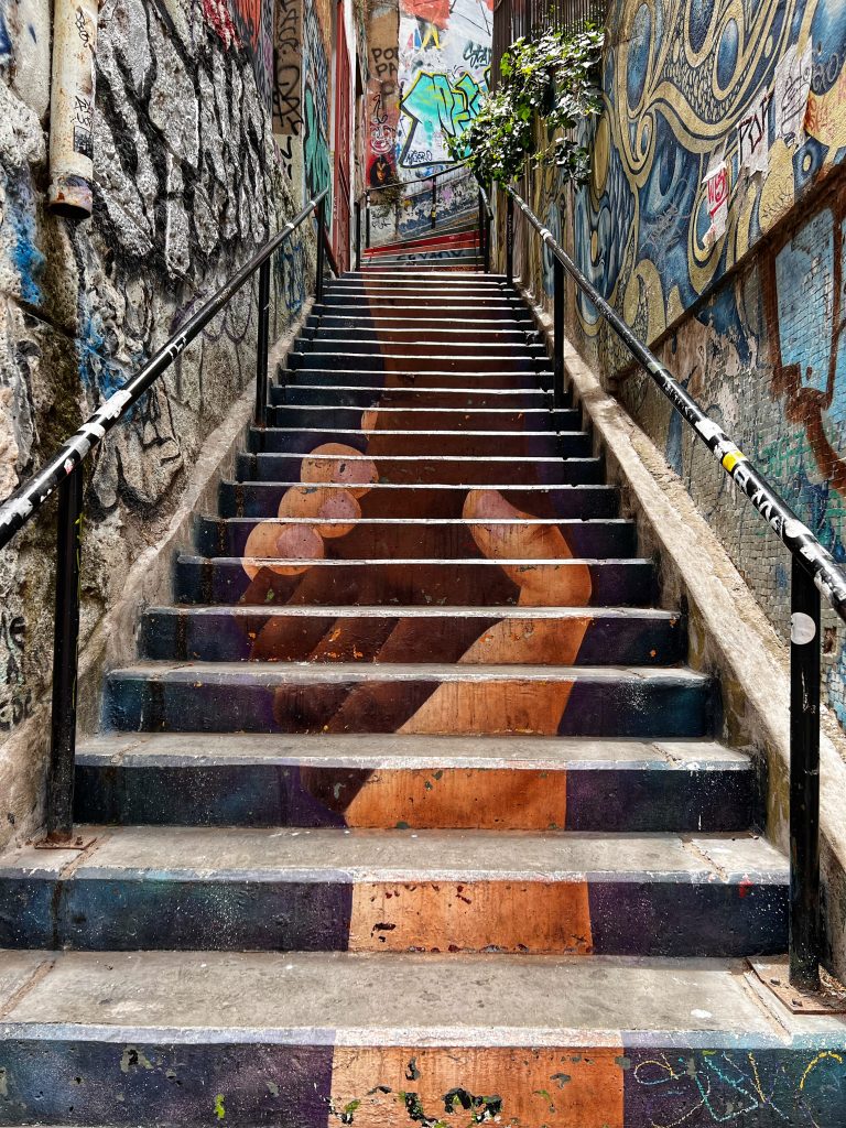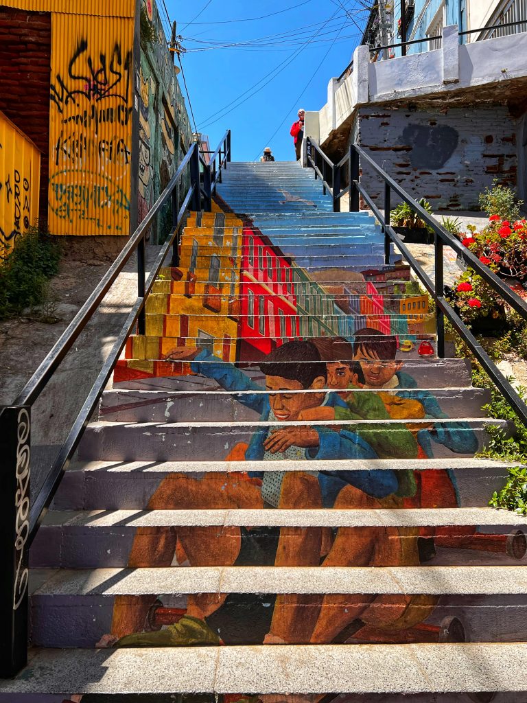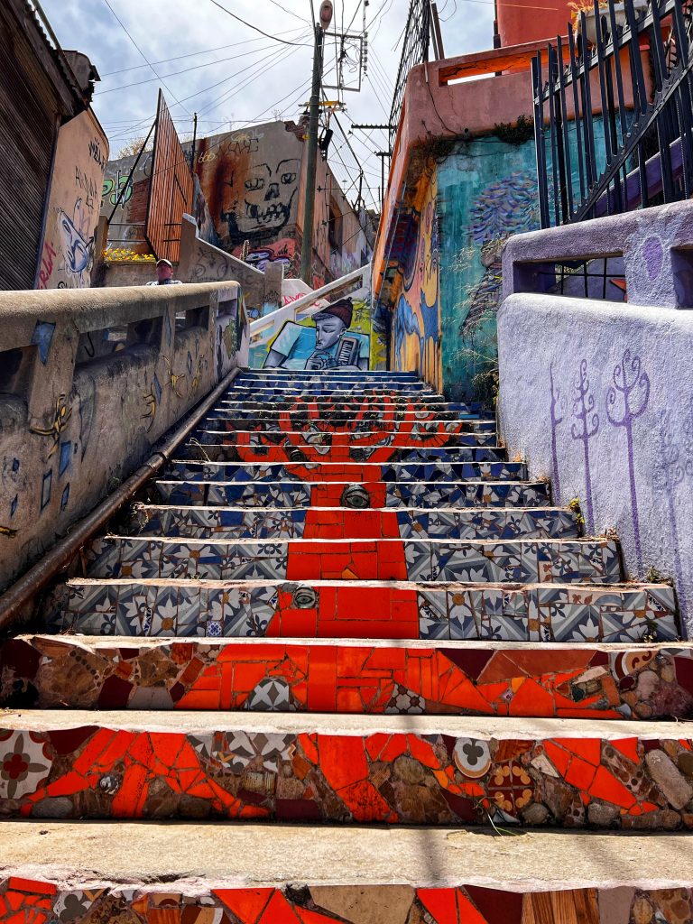 The city is canvassed over 43 hills, so there are many, many steps covered with mosaics or works of art blending in perfectly with the painted walls.