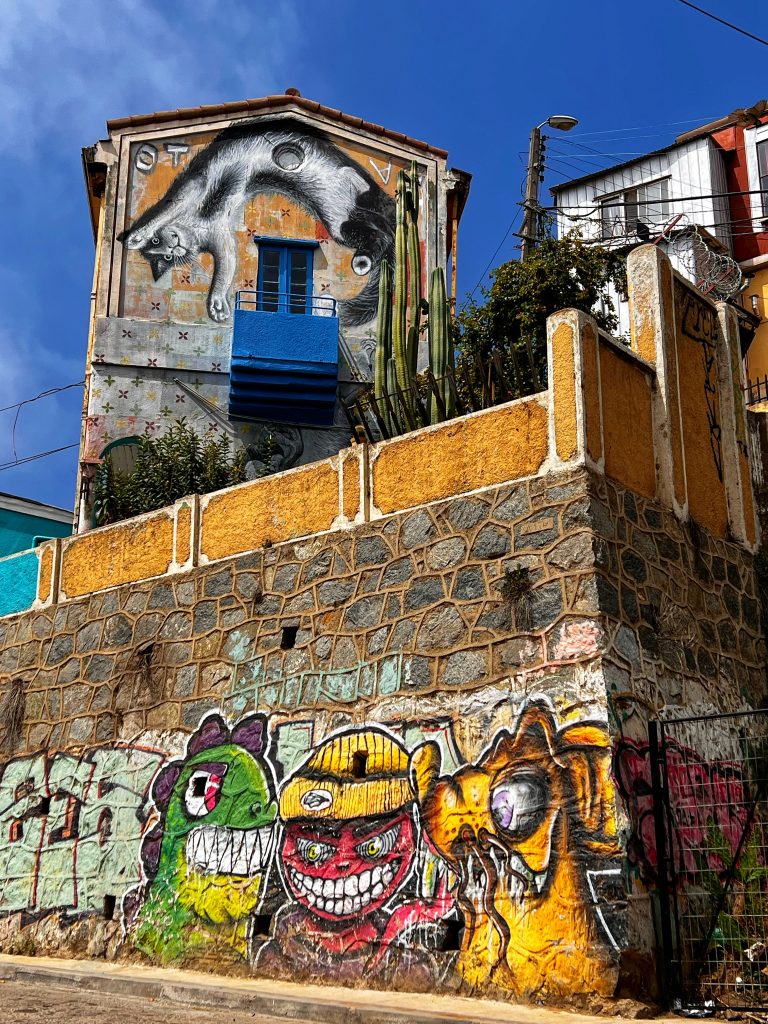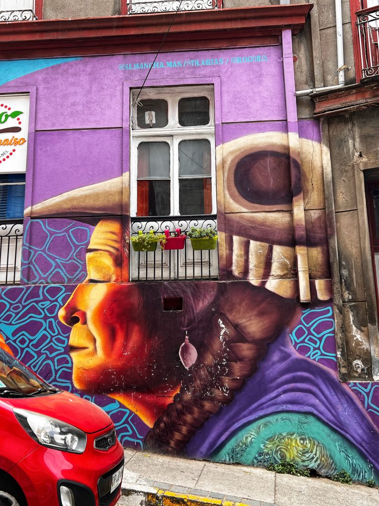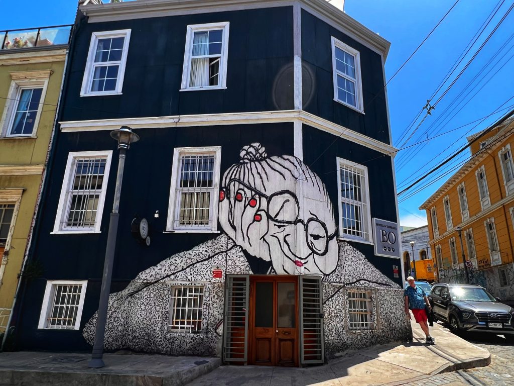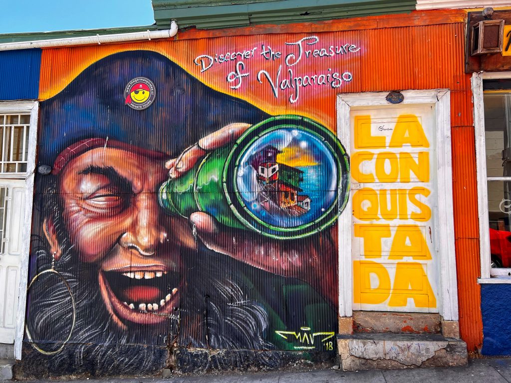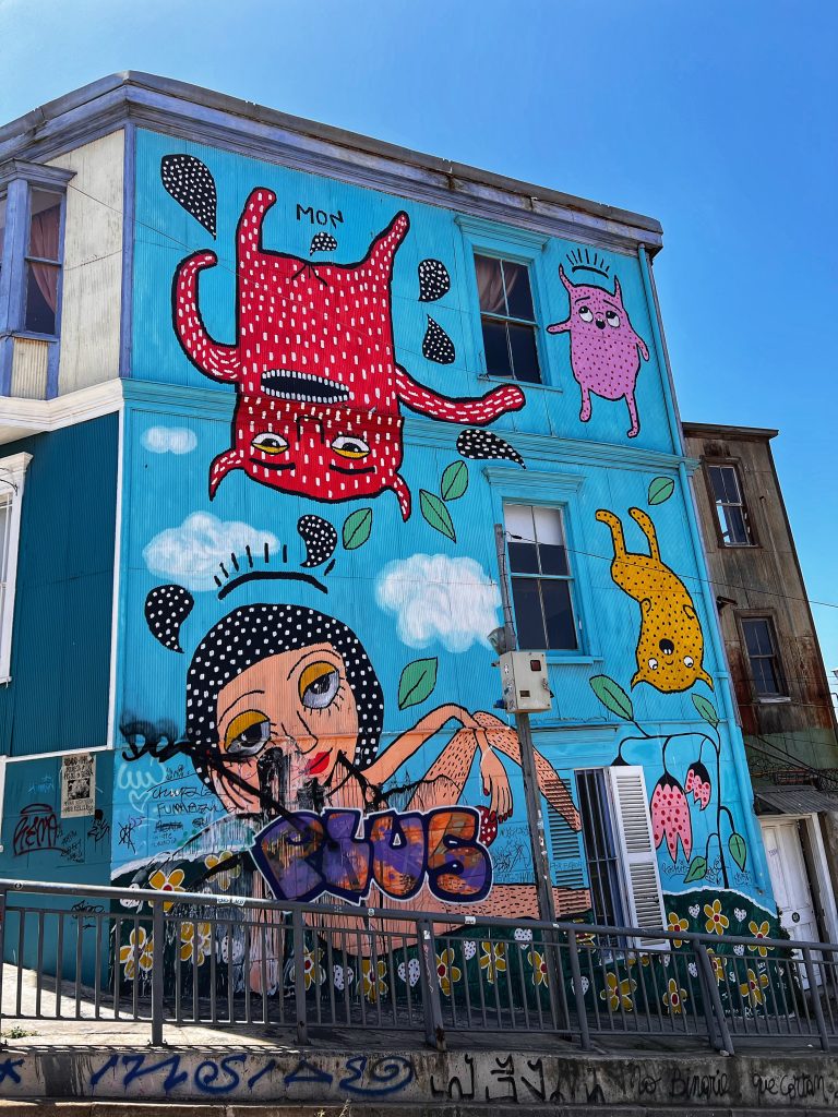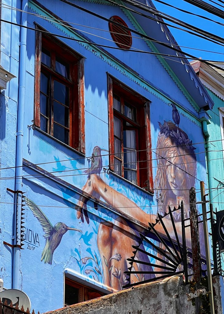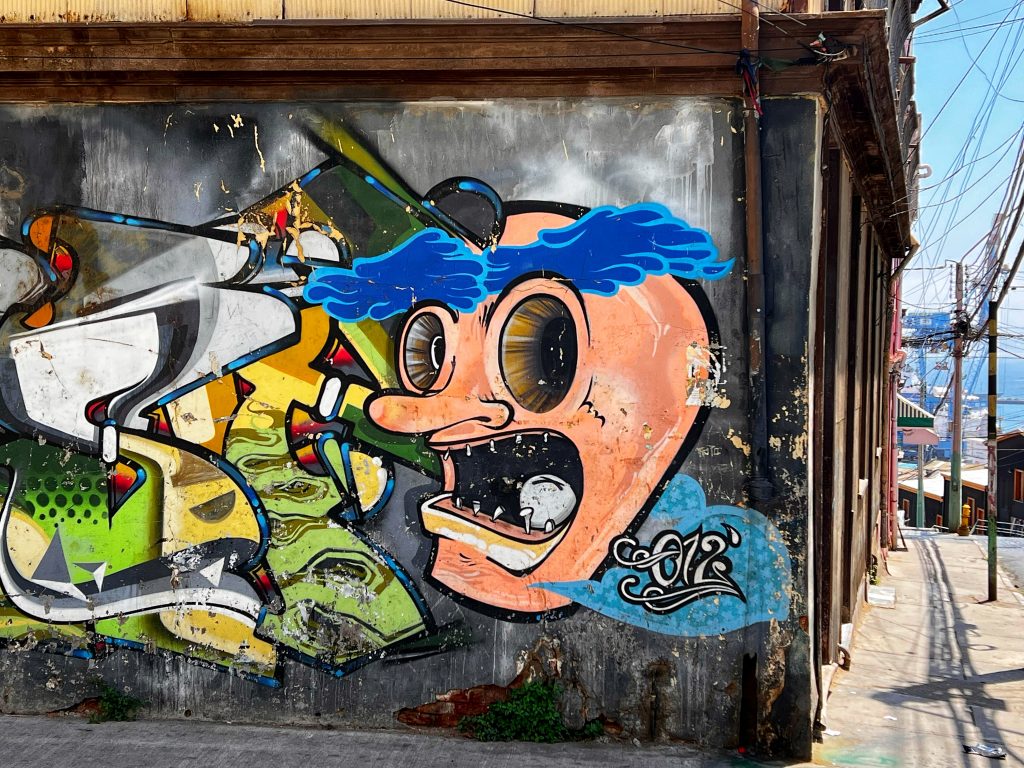 I read a bit of Valparaiso’s history online and learned that Pablo Neruda, a diplomat born in Valparaíso, was appointed Consul General of Chile in Mexico City. Influenced by the art movement in Mexico, when he returned to Chile in 1943, he brought street art back to Valparaiso and the street art movement in Valparaiso quietly emerged. During the 1973 Chilean coup d’état, under the repression of a military dictatorship that banned all political art, graffiti was the perfect form of expression of protest. Valparaíso artists could finish their work and leave without being detected. Of course, their murals were always painted over when found by the gendarmes. Following Chile’s return to democracy in 1990, the local government of Valparaíso legalized street art in celebration of free speech. Now the local government directly supports and also commissions artists to create new works. Hotels, shops and restaurants compete to draw murals on the walls to attract tourists, and there is also friendly competition among street art teams, which has formed the current unique and colorful city of Valparaíso.