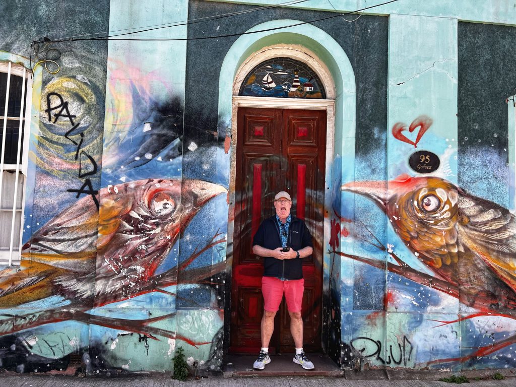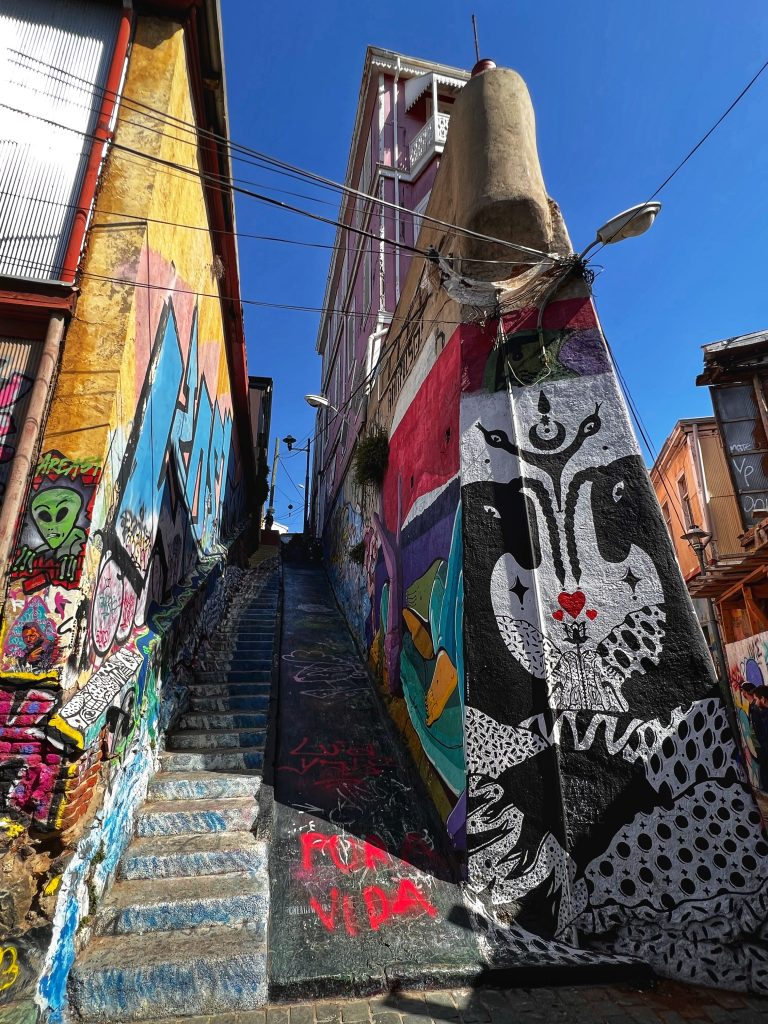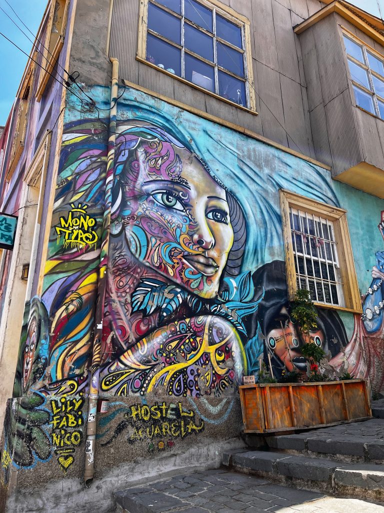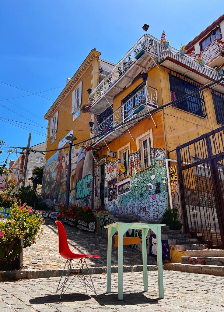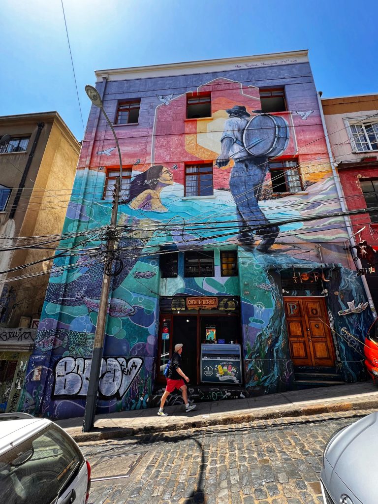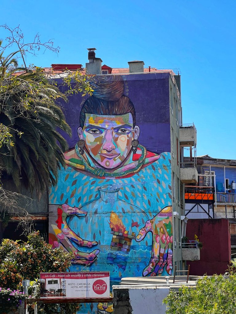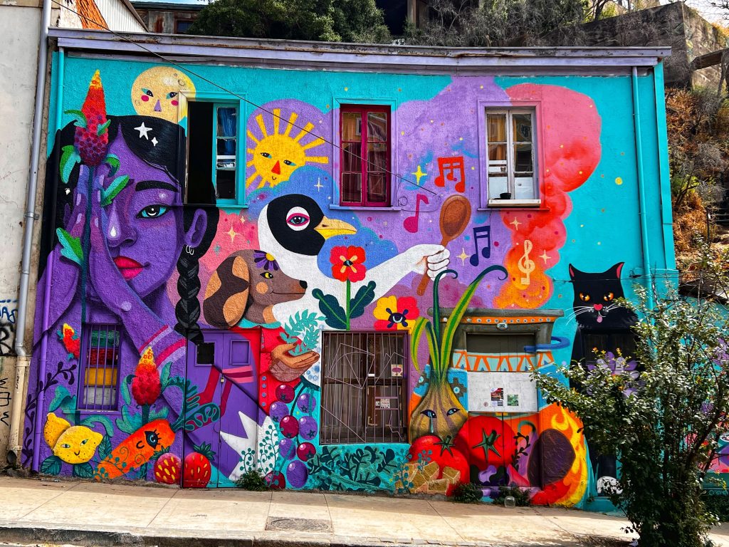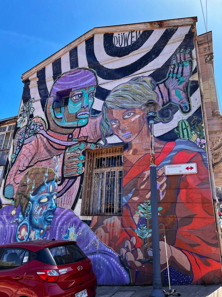I read a bit of Valparaiso’s history online and learned that Pablo Neruda, a diplomat born in Valparaíso, was appointed Consul General of Chile in Mexico City. Influenced by the art movement in Mexico, when he returned to Chile in 1943, he brought street art back to Valparaiso and the street art movement in Valparaiso quietly emerged. During the 1973 Chilean coup d’état, under the repression of a military dictatorship that banned all political art, graffiti was the perfect form of expression of protest. Valparaíso artists could finish their work and leave without being detected. Of course, their murals were always painted over when found by the gendarmes. Following Chile’s return to democracy in 1990, the local government of Valparaíso legalized street art in celebration of free speech. Now the local government directly supports and also commissions artists to create new works. Hotels, shops and restaurants compete to draw murals on the walls to attract tourists, and there is also friendly competition among street art teams, which has formed the current unique and colorful city of Valparaíso.