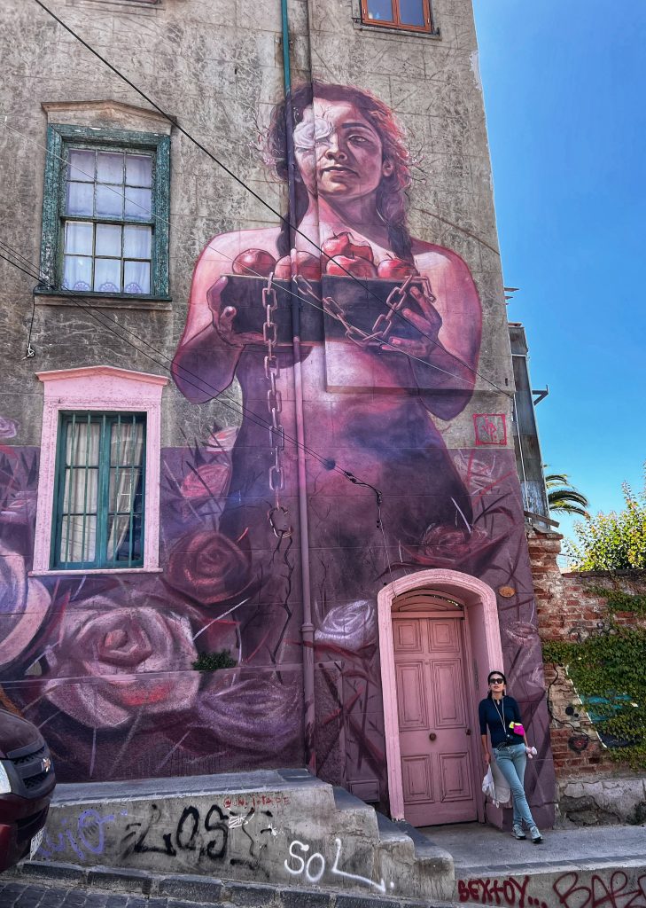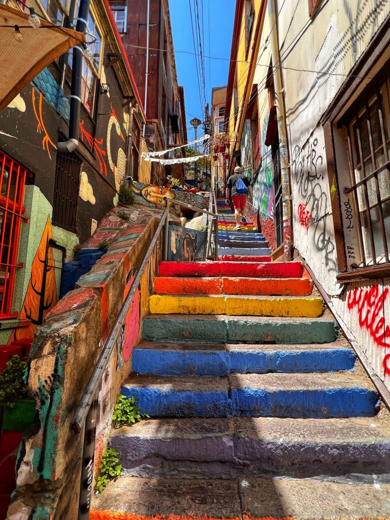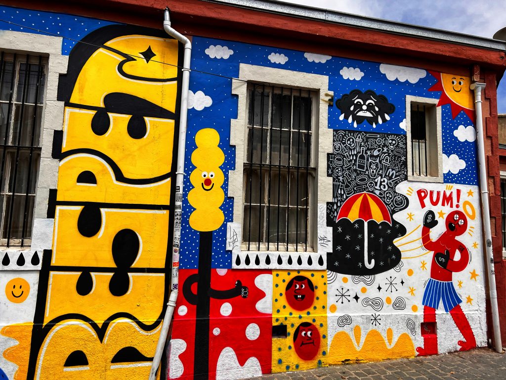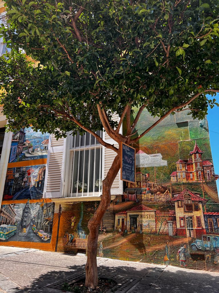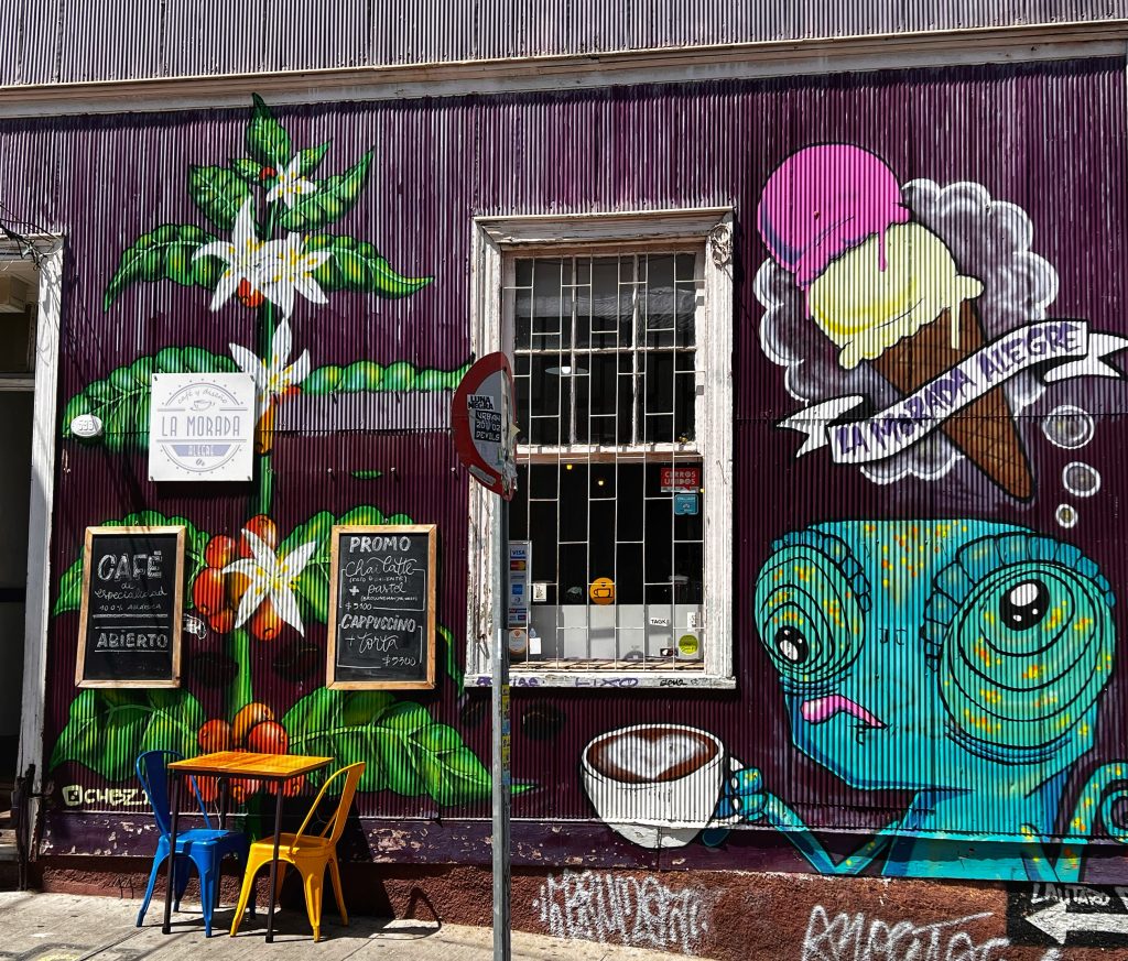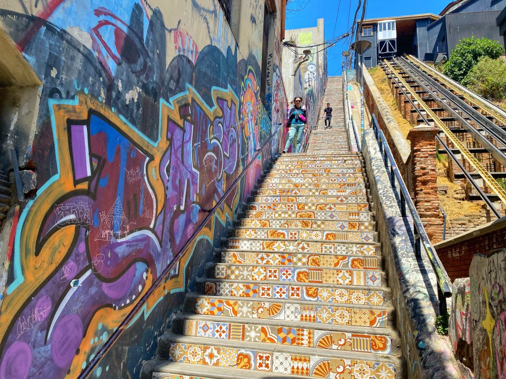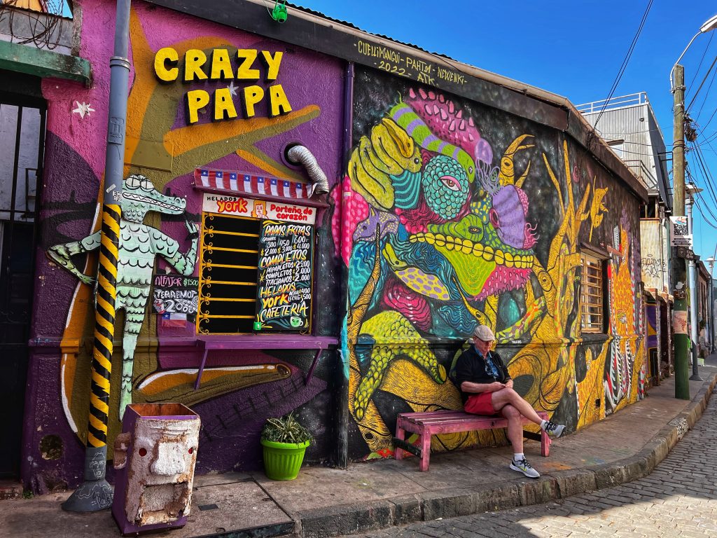 I read a bit of Valparaiso’s history online and learned that Pablo Neruda, a diplomat born in Valparaíso, was appointed Consul General of Chile in Mexico City. Influenced by the art movement in Mexico, when he returned to Chile in 1943, he brought street art back to Valparaiso and the street art movement in Valparaiso quietly emerged. During the 1973 Chilean coup d’état, under the repression of a military dictatorship that banned all political art, graffiti was the perfect form of expression of protest. Valparaíso artists could finish their work and leave without being detected. Of course, their murals were always painted over when found by the gendarmes. Following Chile’s return to democracy in 1990, the local government of Valparaíso legalized street art in celebration of free speech. Now the local government directly supports and also commissions artists to create new works. Hotels, shops and restaurants compete to draw murals on the walls to attract tourists, and there is also friendly competition among street art teams, which has formed the current unique and colorful city of Valparaíso.