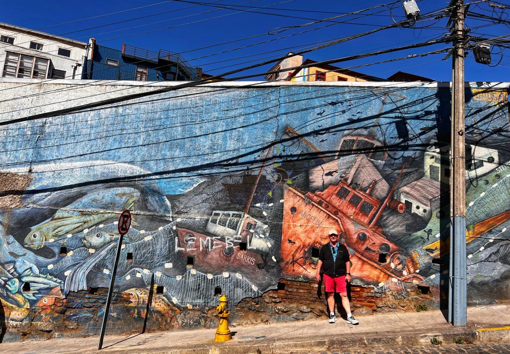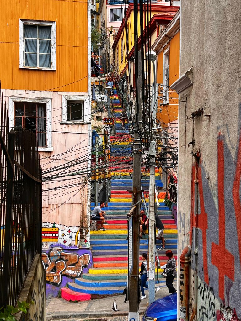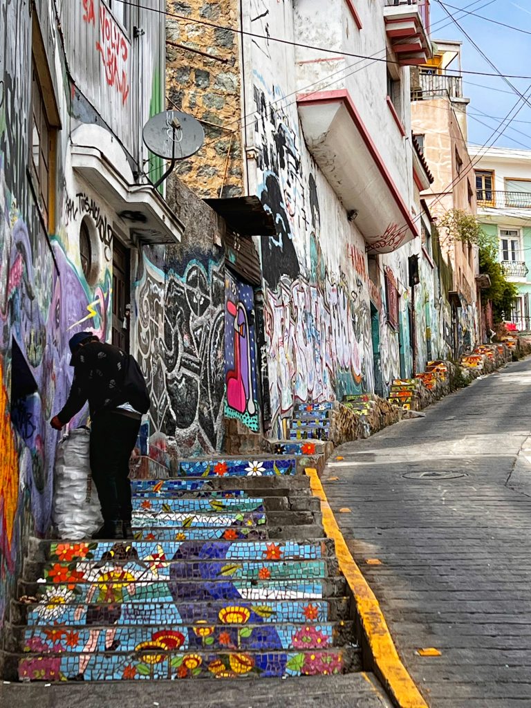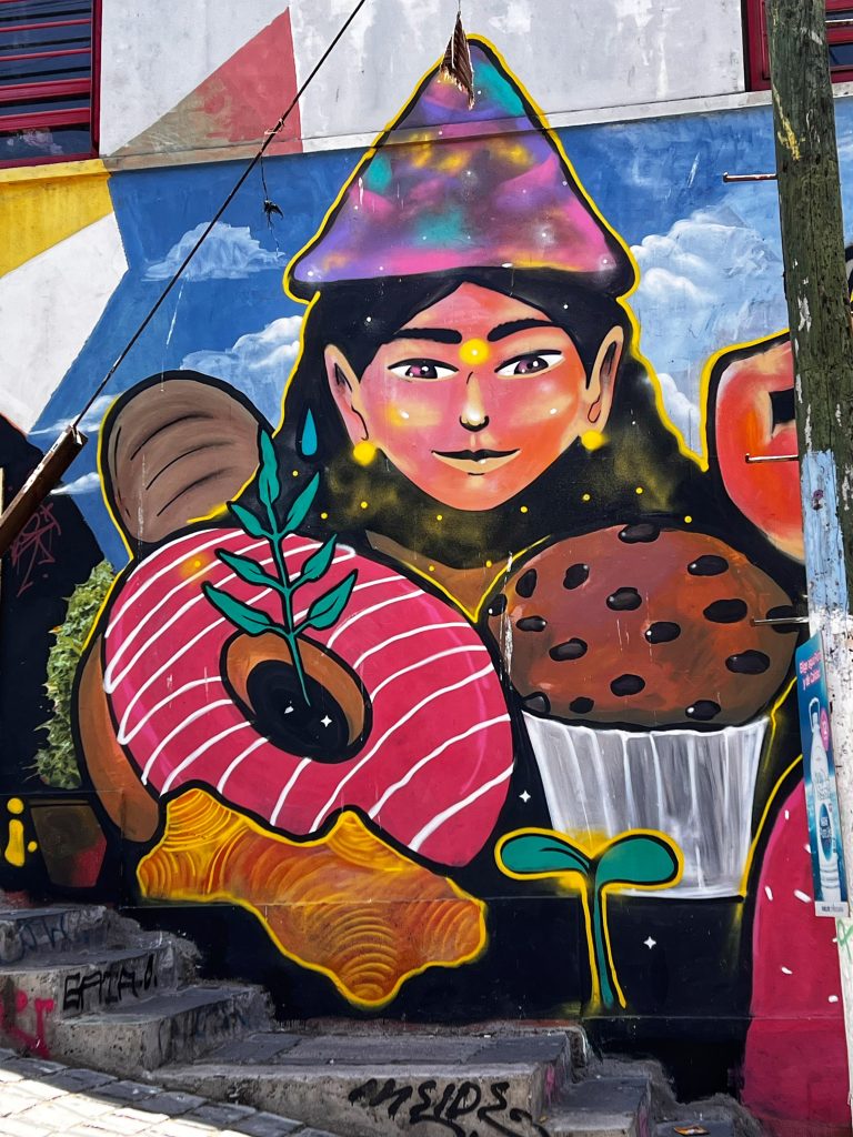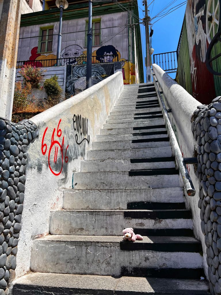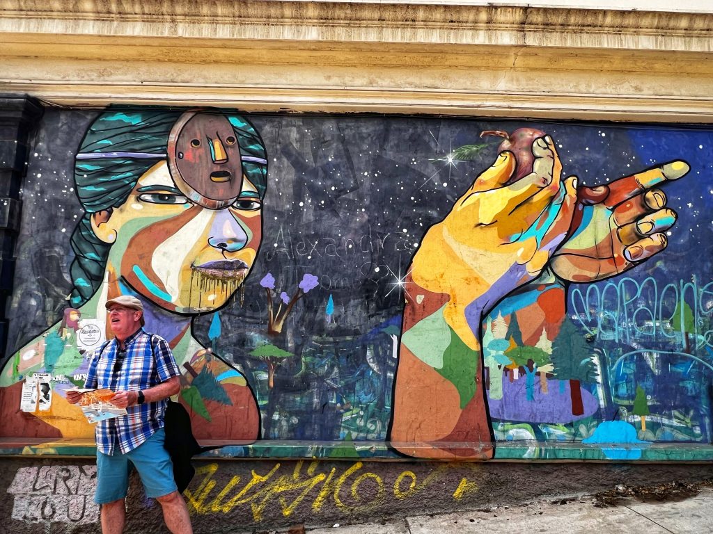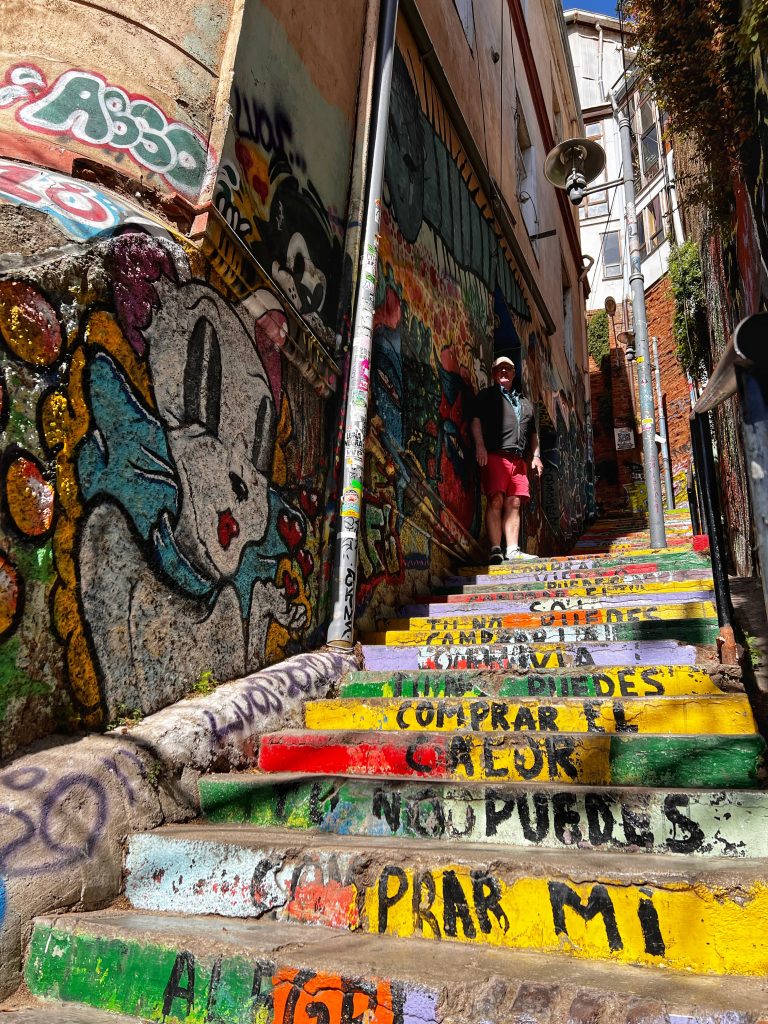 I read a bit of Valparaiso’s history online and learned that Pablo Neruda, a diplomat born in Valparaíso, was appointed Consul General of Chile in Mexico City. Influenced by the art movement in Mexico, when he returned to Chile in 1943, he brought street art back to Valparaiso and the street art movement in Valparaiso quietly emerged. During the 1973 Chilean coup d’état, under the repression of a military dictatorship that banned all political art, graffiti was the perfect form of expression of protest. Valparaíso artists could finish their work and leave without being detected. Of course, their murals were always painted over when found by the gendarmes. Following Chile’s return to democracy in 1990, the local government of Valparaíso legalized street art in celebration of free speech. Now the local government directly supports and also commissions artists to create new works. Hotels, shops and restaurants compete to draw murals on the walls to attract tourists, and there is also friendly competition among street art teams, which has formed the current unique and colorful city of Valparaíso.