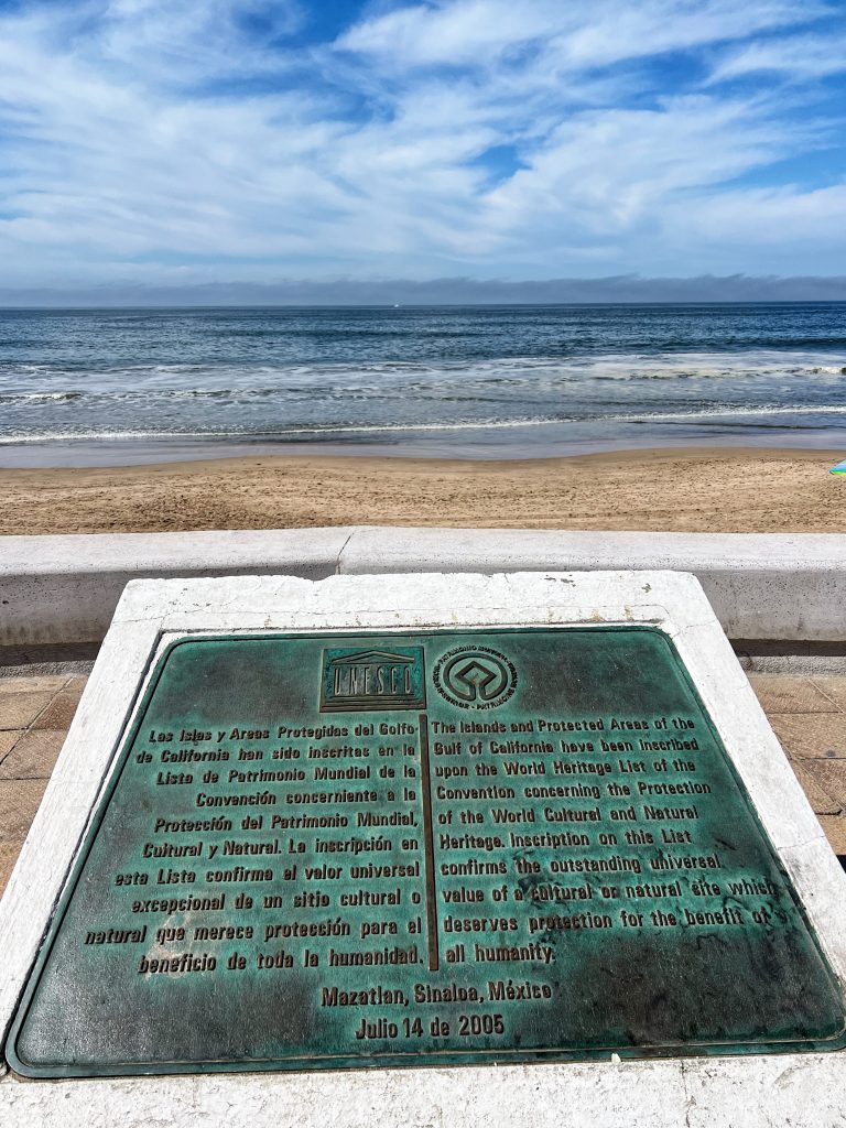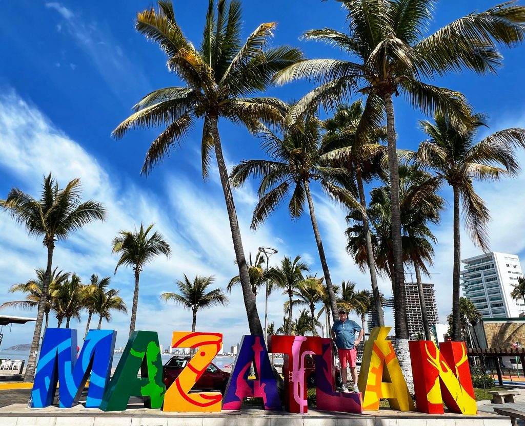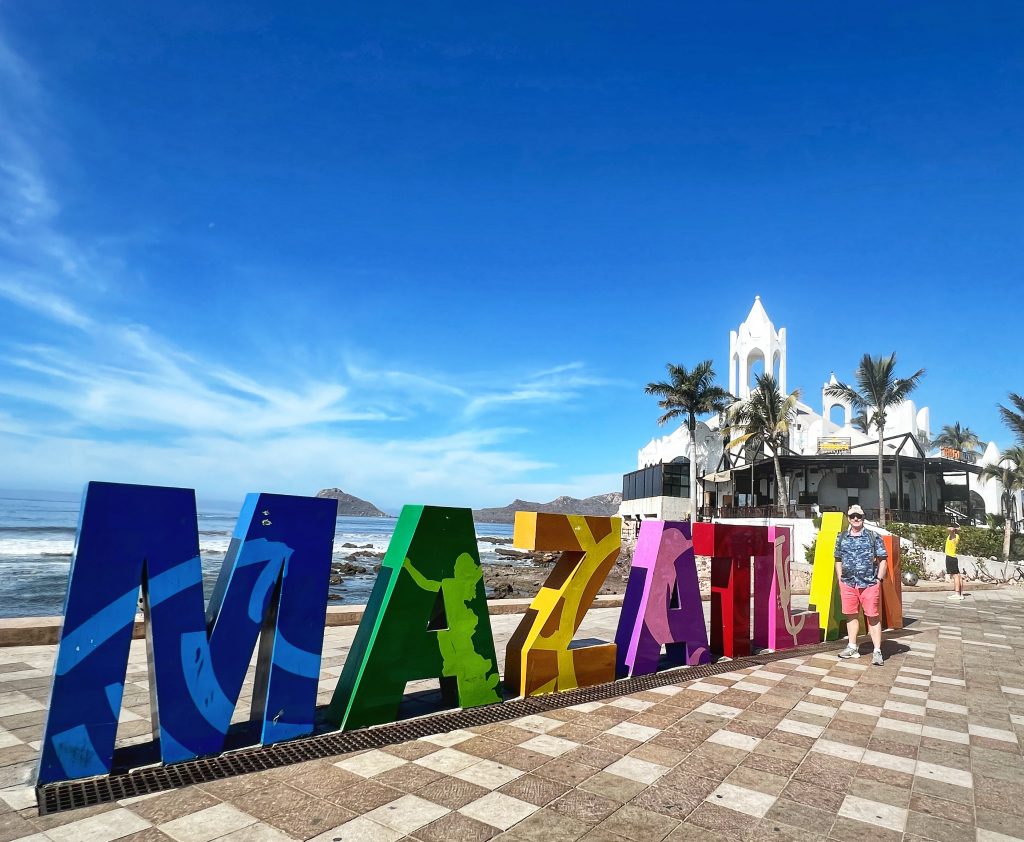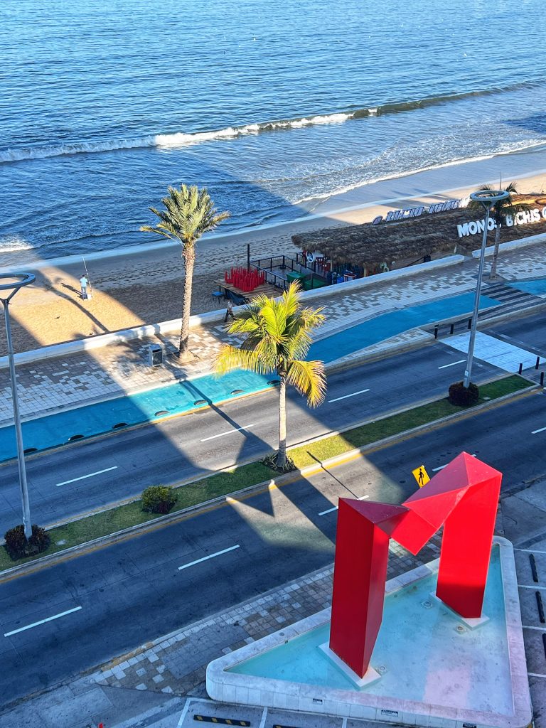 Our plan was to walk the entire length of Mazatlán’s seaside promenade. The main Malecon, stretching about 7 kilometers (4.3 miles), is one of the longest coastal walkways in the world, running alongside the Pacific Ocean and connecting the historic old town, the Golden Zone, and the newer parts of the city. We took an Uber to the starting point in the Golden Zone, beginning our walk at the iconic “Mazatlán” letters sign, strolling along with plenty of stops along the way.