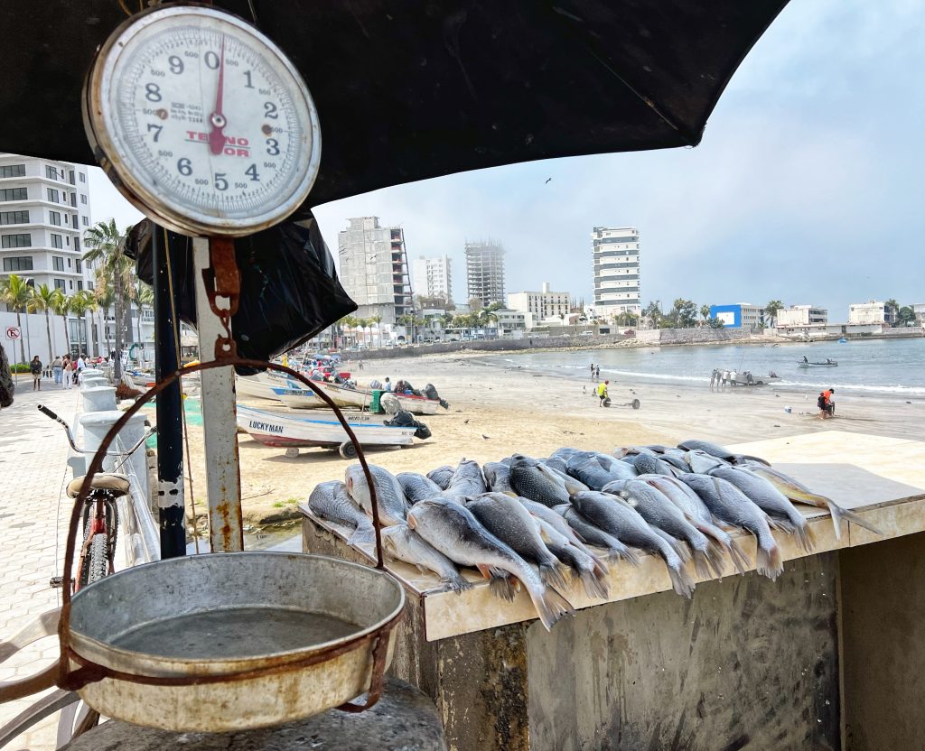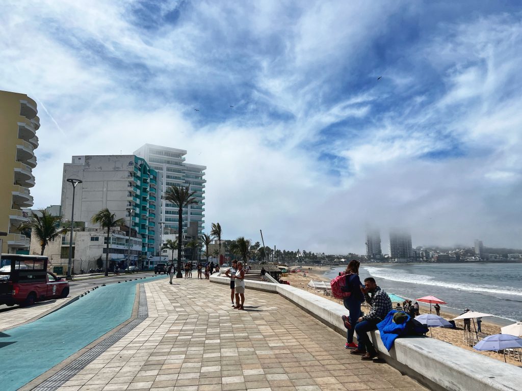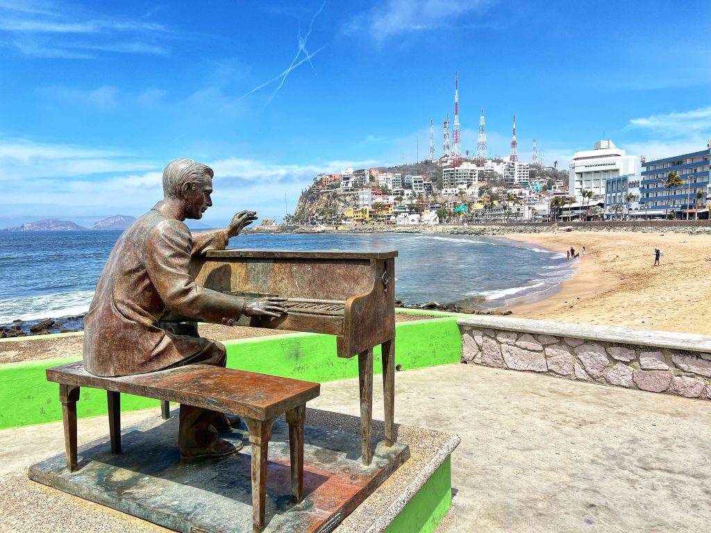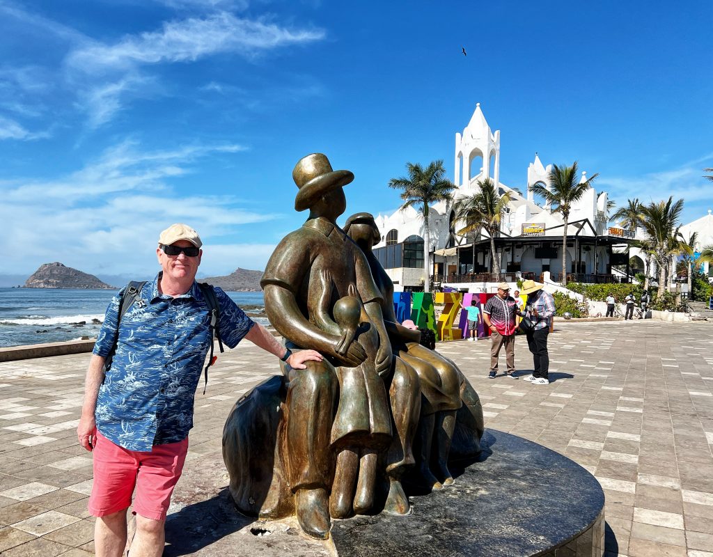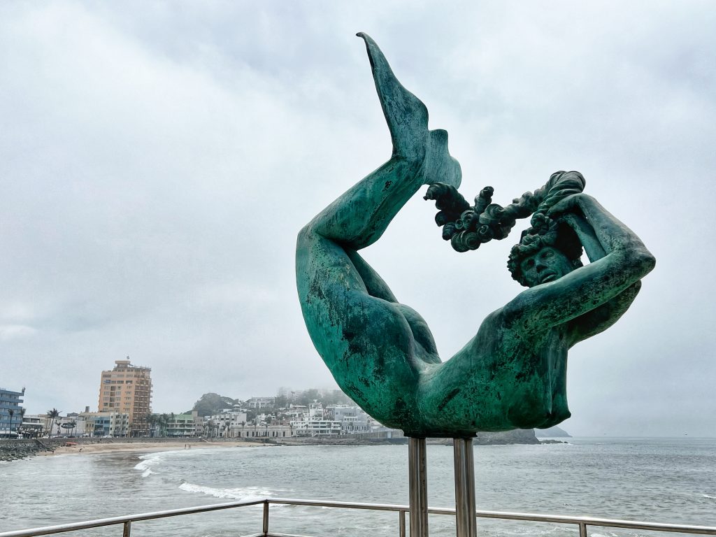 Our plan was to walk the entire length of Mazatlán’s seaside promenade. The main Malecon, stretching about 7 kilometers (4.3 miles), is one of the longest coastal walkways in the world, running alongside the Pacific Ocean and connecting the historic old town, the Golden Zone, and the newer parts of the city. We took an Uber to the starting point in the Golden Zone, beginning our walk at the iconic “Mazatlán” letters sign, strolling along with plenty of stops along the way.