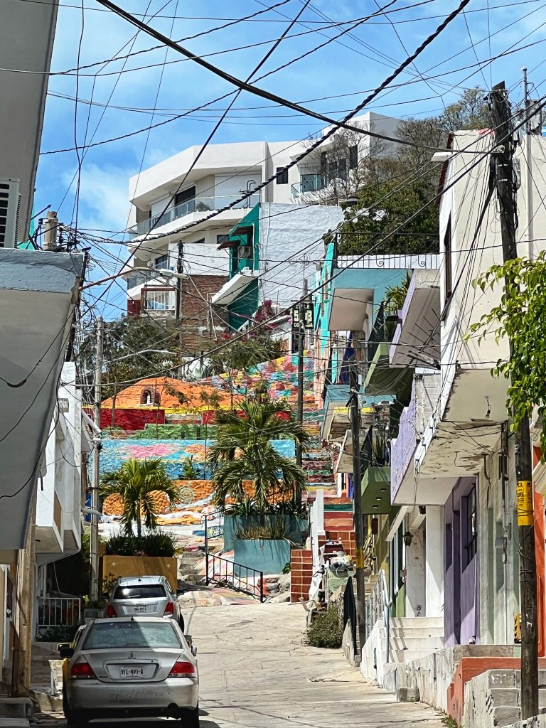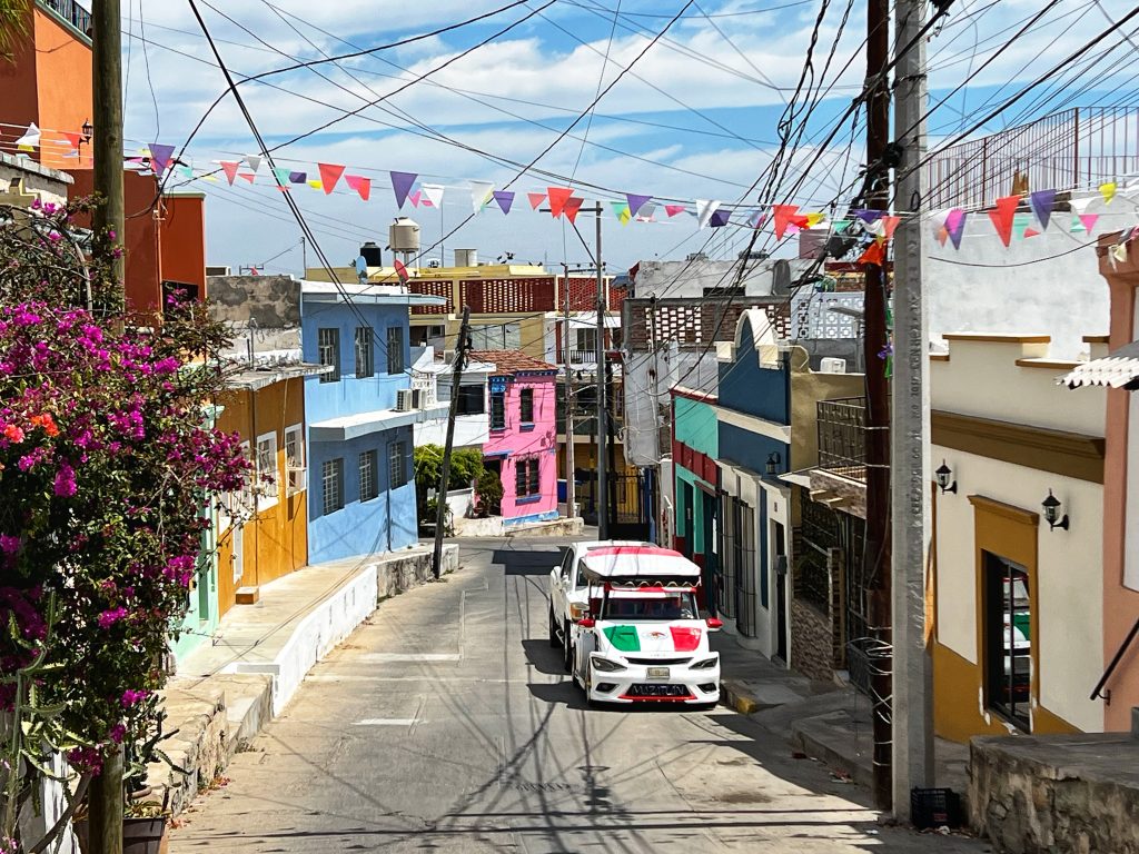 Today was a relatively easy day. In the morning, we headed to a small hill on the west side of the old town, also known as the Mirador Mazatlán viewpoint. It took about 30 minutes to hike up, with a peaceful and quiet atmosphere along the way. The hillside is a residential area, scattered with a few brightly colored and uniquely styled houses, adding charm and a sense of life to the walk.