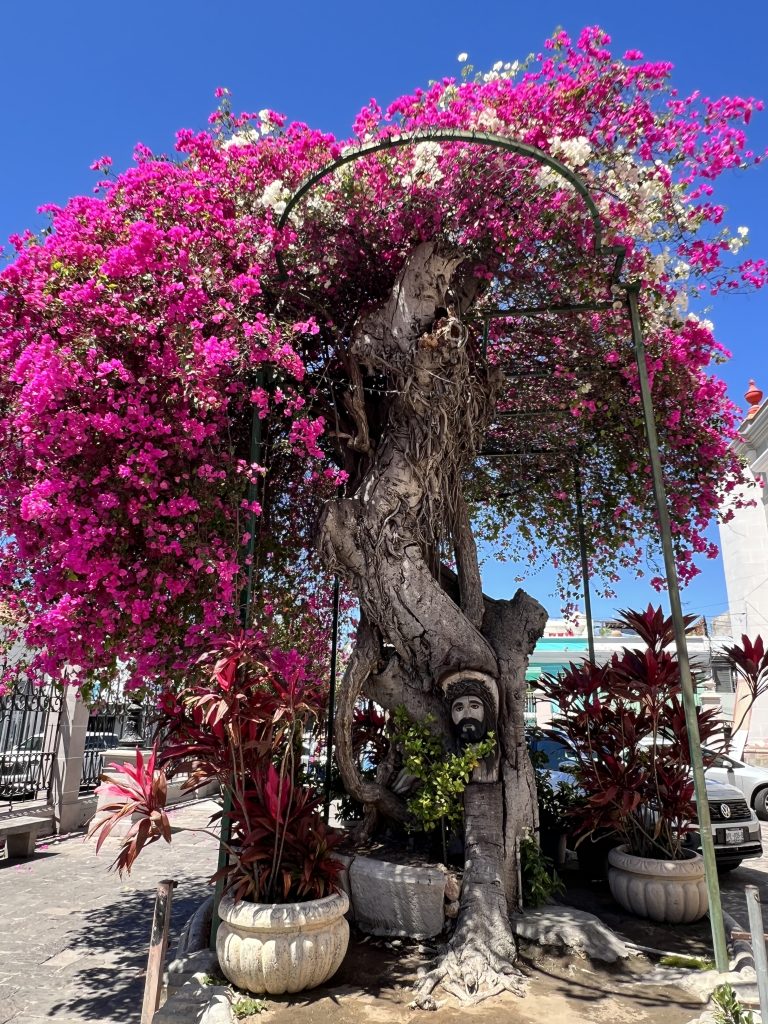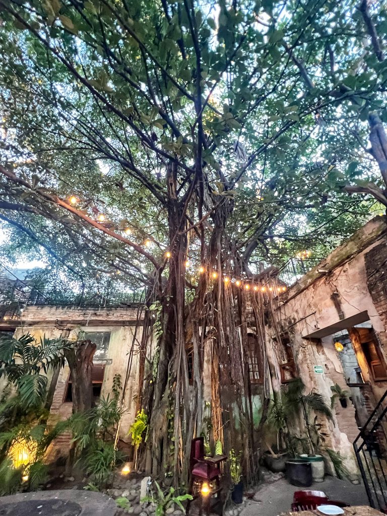 晚餐我们选了一家墨西哥餐厅,就坐落在古城中心,名为 El Presidio,设于一座建于1876年的法国殖民风格老宅中。这栋历史建筑最初由一位瑞士银行家兴建,后来成为 García 家族的宅邸,见证了百余年的岁月流转。餐厅的露天庭院宽敞开阔,被郁郁葱葱的植物环绕,几棵高大而苍老的参天古树依附着建筑而生,为整个空间增添了厚重而静谧的氛围,是一个很有情调的用餐之地,可惜的是我想看到的萨克斯风的演奏者今晚没有出现,略显遗憾。食物还算可口,虽谈不上惊艳,但比起其他墨西哥餐厅,确实略胜一筹。
