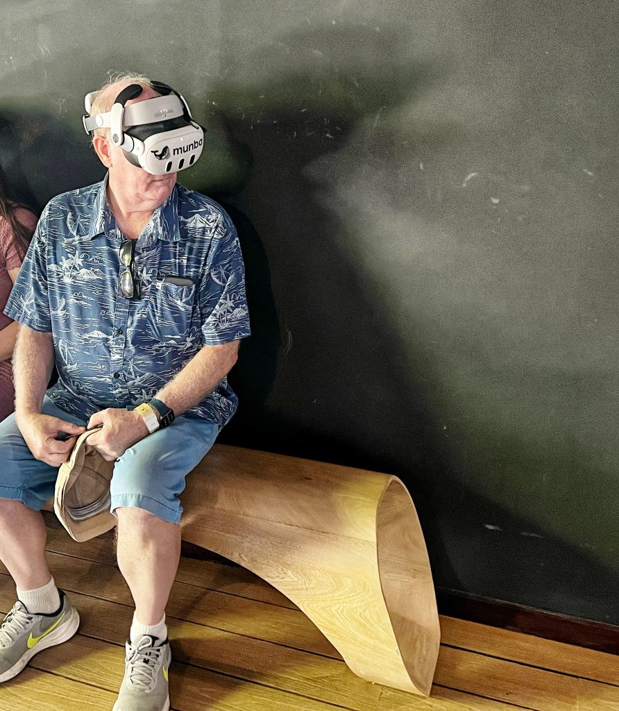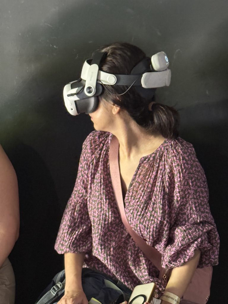 这个虚拟的眼镜展示了人工礁石安装的全过程,仿佛带人潜入深海之中,让人有种置身海底的沉浸感。- This virtual headset showcased the entire process of installing the artificial reefs, making you feel as if you were diving deep into the ocean—immersed in an underwater world.
