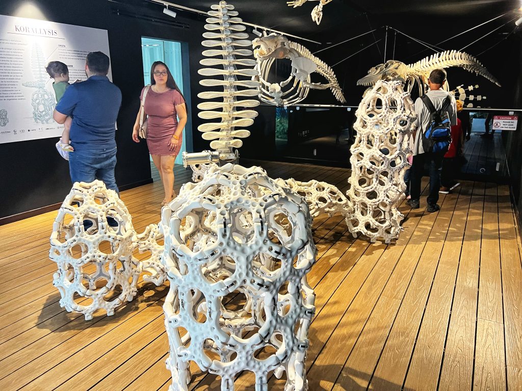 马萨特兰所在的加利福尼亚湾是世界上鲸类活动最频繁的区域之一,每年冬季都会有灰鲸、座头鲸等洄游至此繁殖,鲸鱼博物馆正是希望借此提高公众对这些海洋巨兽及其生态系统的关注与尊重。展馆里展示了鲸鱼骨骼模型、海洋知识图文介绍,还有有关鲸类迁徙、声纳系统与海洋生态的互动展项。