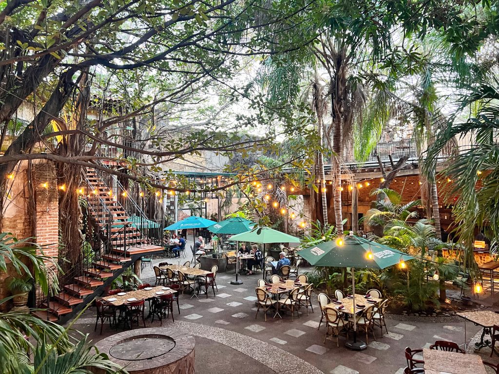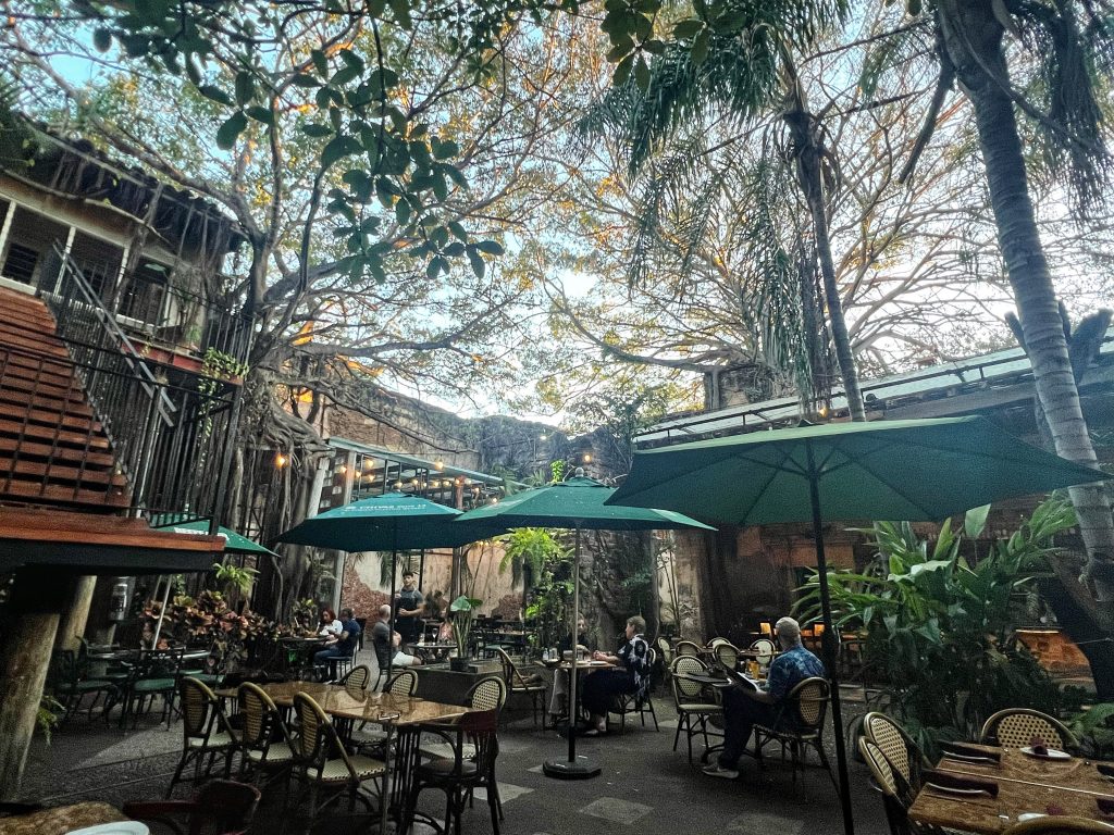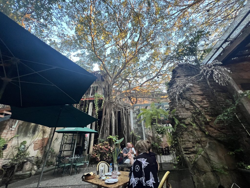 The restaurant’s open-air courtyard is spacious and surrounded by lush greenery. Several towering, ancient trees grow right alongside the structure, adding a sense of depth and tranquility to the atmosphere. It’s a very charming place to dine—though I was a bit disappointed that the saxophone player I’d been hoping to see didn’t perform that night.