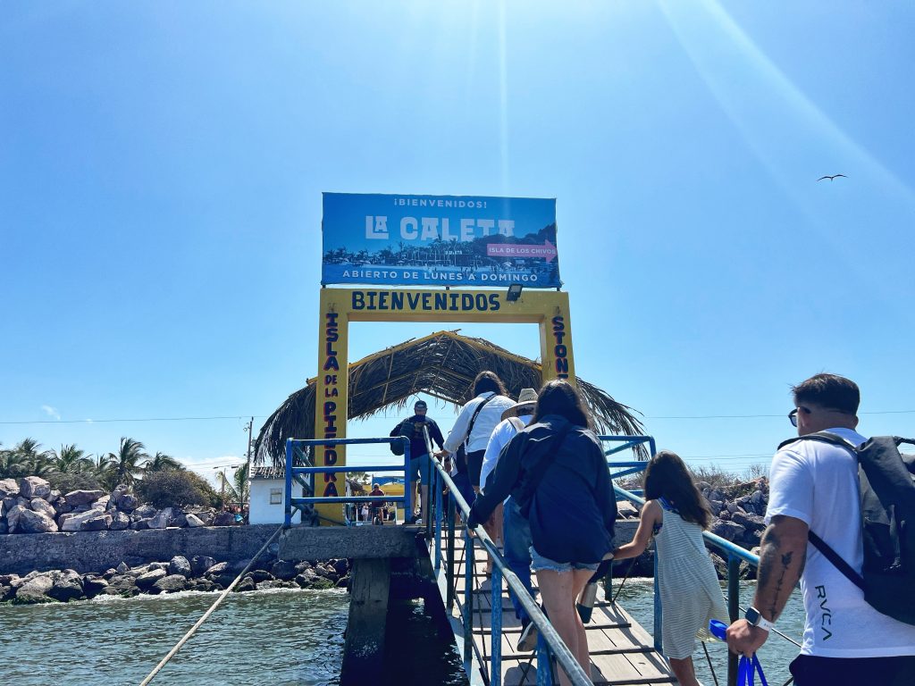 周六上午,我们乘坐一艘小船,穿过与马萨特兰市区之间的水道,去了名为“石头岛”的小岛。船程不过两三分钟,转眼便抵达。上岛后却发现四下寂静,几乎没有游客,沿岸一排排空荡荡的餐厅,仿佛在等待一场未至的热闹。不难想象,在旺季时这里应是喧嚣热闹的景象。我们沿着海滩徒步了一会儿,阳光明媚,海风轻拂,却难掩单调,无聊的氛围。没多久便决定返回,重新坐船回到了市区。