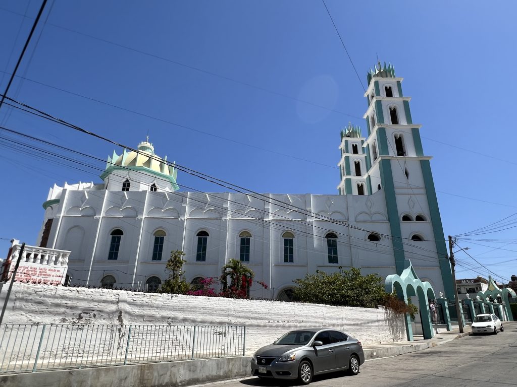 看到了一个天主教堂,建筑风格很独特 – We came across a Catholic church with a uniquely striking architectural style.