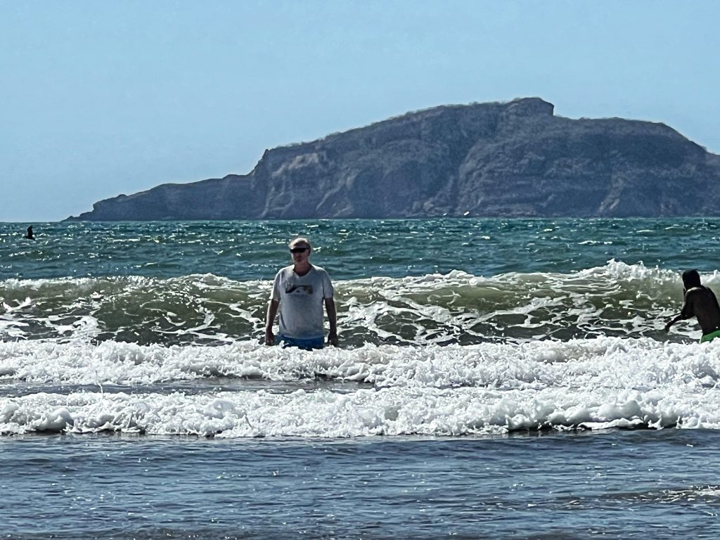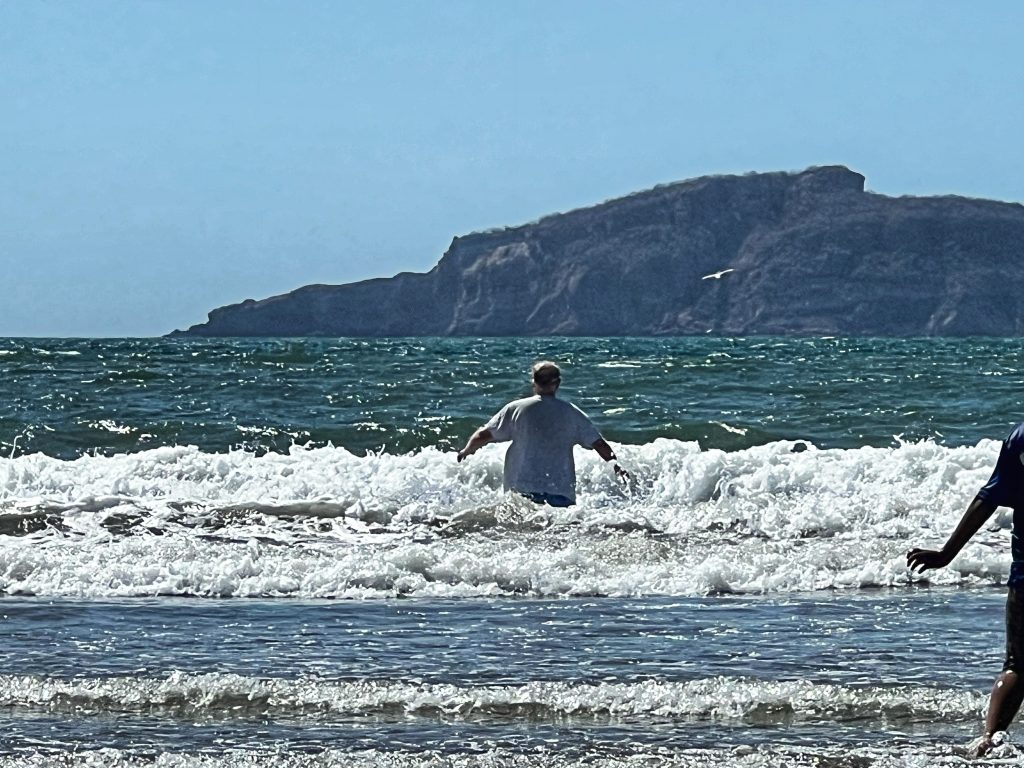 这是某人自抵达马萨特兰以来第一次下海(也许是因为另一个人不太喜欢水?) – It was someone’s first time going into the ocean since arriving in Mazatlán. (Maybe because someone else doesn’t like the water)?