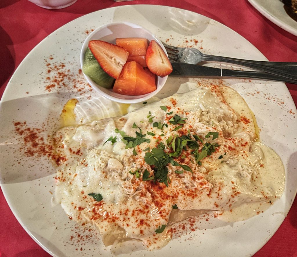 For dinner, we went to Topolo, a Mexican restaurant with a courtyard. It quickly became clear that nearly all the diners were white tourists — clearly a spot geared toward visitors. As for the food, it was pretty mediocre; in the end, I only finished the fruit that came as a side dish.