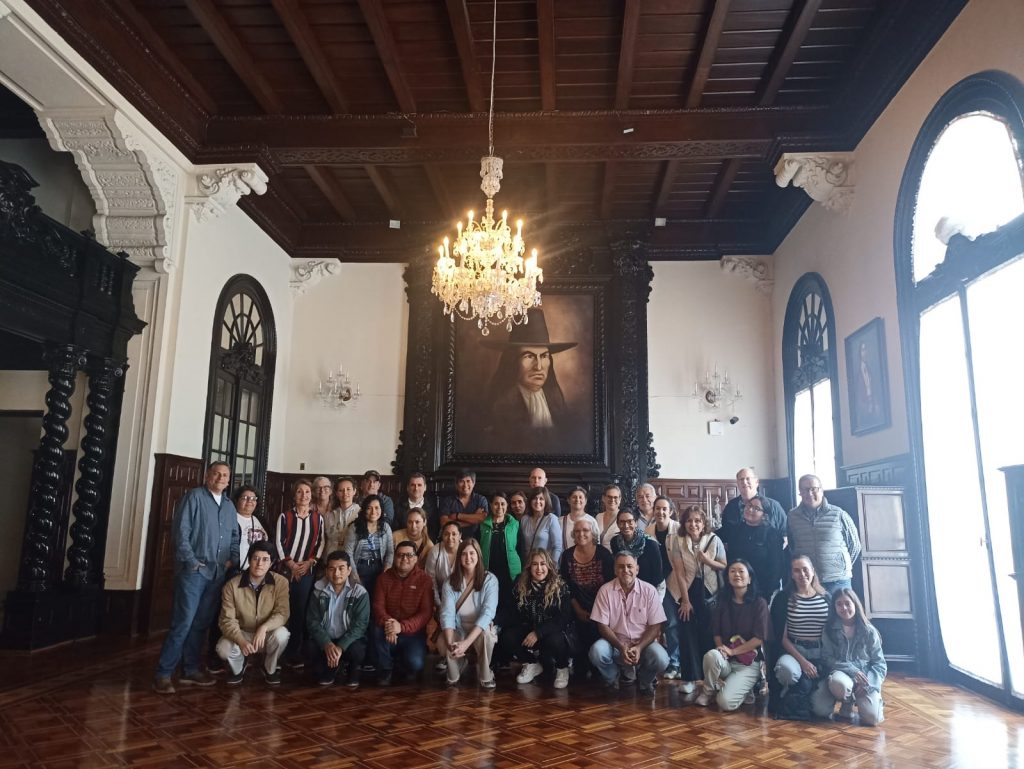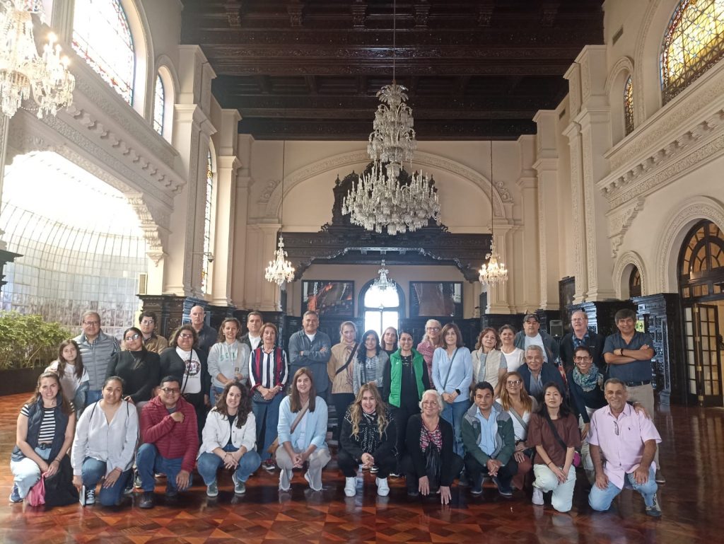 政府宫中整体风格感觉奢华而典雅,巨大的水晶吊灯,金色雕饰,大理石地板和雕刻精美的木制家具,屋顶射进阳光的彩绘玻璃。在一间会议室内,一幅巨大的画像吸引了我,画中是一位看起来像秘鲁本土人的肖像。我询问身边的一位游客是否能用英语交流,另一位游客简单地告诉我,这人正是图帕克·阿马鲁二世(Túpac Amaru II),秘鲁历史上的英雄,是反抗西班牙殖民统治的象征人物。他领导起义对抗殖民者的不公与压迫,但最终被西班牙殖民者以极其残忍的方式处死——四马分尸。这个游团让人意外的是讲解员竟然给我们拍照留念! 太惊喜了,虽然不允许带手机,总算留下了一些纪念。