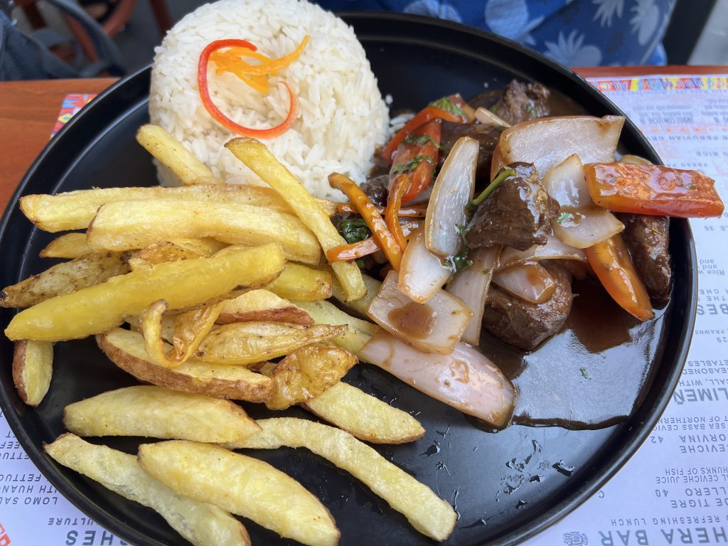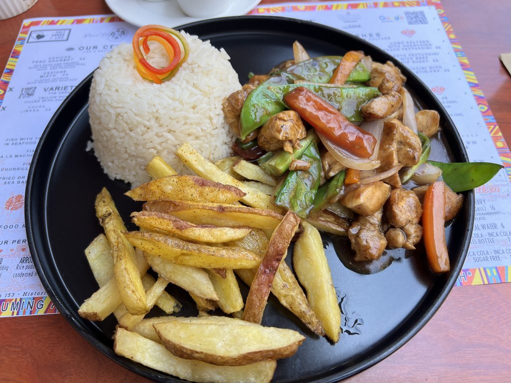看完庄严的换岗仪式,我们在广场附近的一家餐厅享用了一顿简单的午餐。这种地方自然是游客价,加上游客味。说到秘鲁美食,不得不提到一种深受中国菜影响的菜系——Chifa,是的,就是中文“吃饭”的谐音,饱含着文化交融的韵味。19世纪中后期,大批中国移民,尤其是来自广东的工人,漂洋过海来到秘鲁。他们将传统中餐的烹饪技艺与当地的食材结合,逐渐发展出了这一风味独特的菜系。