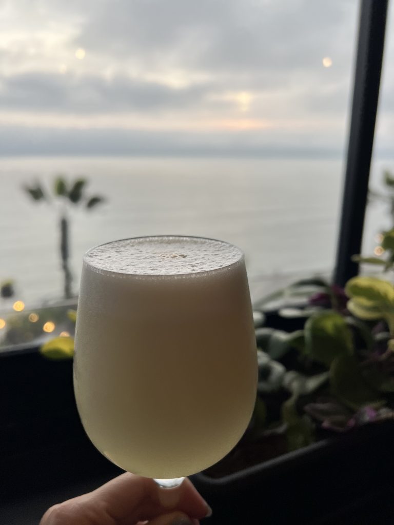 带着一身疲惫,我们乘坐Uber返回了民宿,稍作休息后,便前往拉尔科马尔购物中心。挑了一家还有靠窗座位的餐厅,坐下后点了一杯皮斯科酸酒和一瓶啤酒,满心期待地准备在夕阳余晖下享受这片刻的悠闲时光。然而,天公不作美,厚重的雾霭笼罩着太平洋,云层深锁了黄昏的光影。只有片刻的,太阳的光芒从云层的缝隙中挣脱出来,短暂地洒下了几抹日落的柔光,让人感到一丝遗憾。