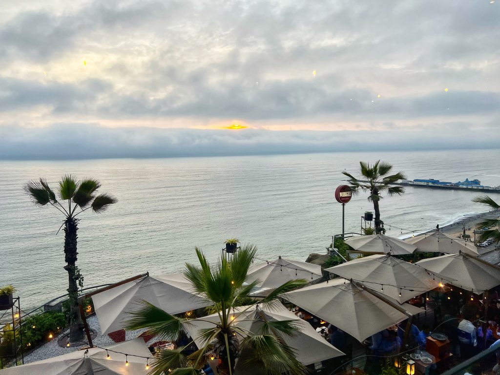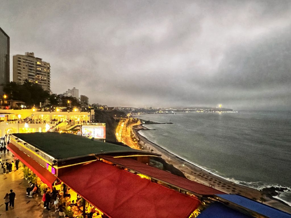 Exhausted from the day, we took an Uber back to our Airbnb for a brief rest before heading to the Larcomar Shopping Center. We chose a restaurant with window-side seating, ordered a Pisco Sour and a beer, and eagerly prepared to enjoy a serene moment under the sunset’s glow. However, nature had other plans. Thick fog blanketed the South Pacific Ocean, and dense clouds obscured the golden hues of dusk. For just a fleeting moment, the sun’s rays broke through the gaps, casting a few soft beams of light before fading away. It was beautiful, yet left us unsatisfied.