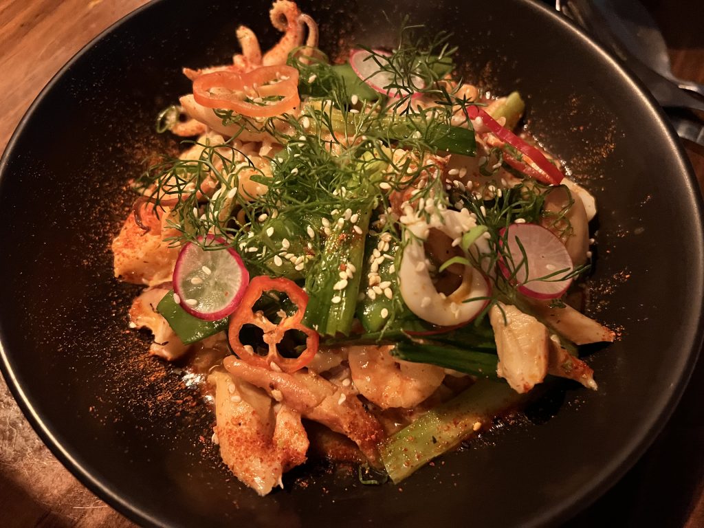 晚餐选在了一家名为Amankaya的秘鲁餐厅,位于一栋建于1920年的小楼里。没有预约,餐厅里人不多,我们幸运地被安排在二楼的小阳台座位,环境颇为惬意。菜品中不乏创意之作,其中最好吃的要数PJG点的海鲜饭,鲜香浓郁,令人回味无穷。