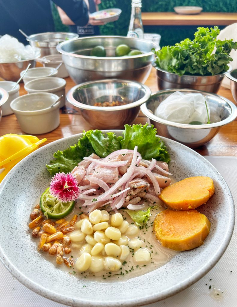 Today’s class had only three participants and focused on two classic Peruvian dishes—Ceviche and Causa (a chicken potato salad like thing)—as well as the famous Pisco Sour cocktail. The overall experience was great, and I can confidently say I’ve grasped the basics of making these dishes. I’ll definitely try them at home. The only challenge will likely be finding the two Peruvian chili varieties, which might be difficult to find back home, posing a hurdle to recreating the authentic flavors.