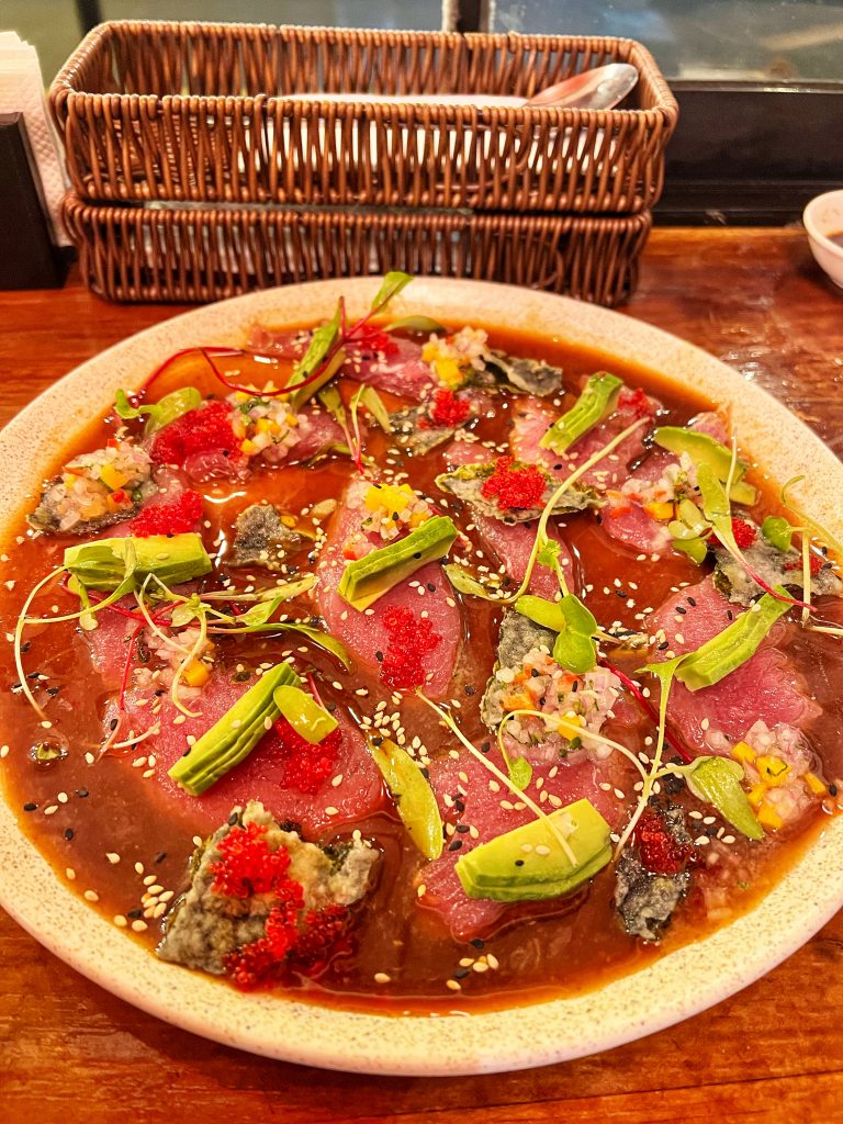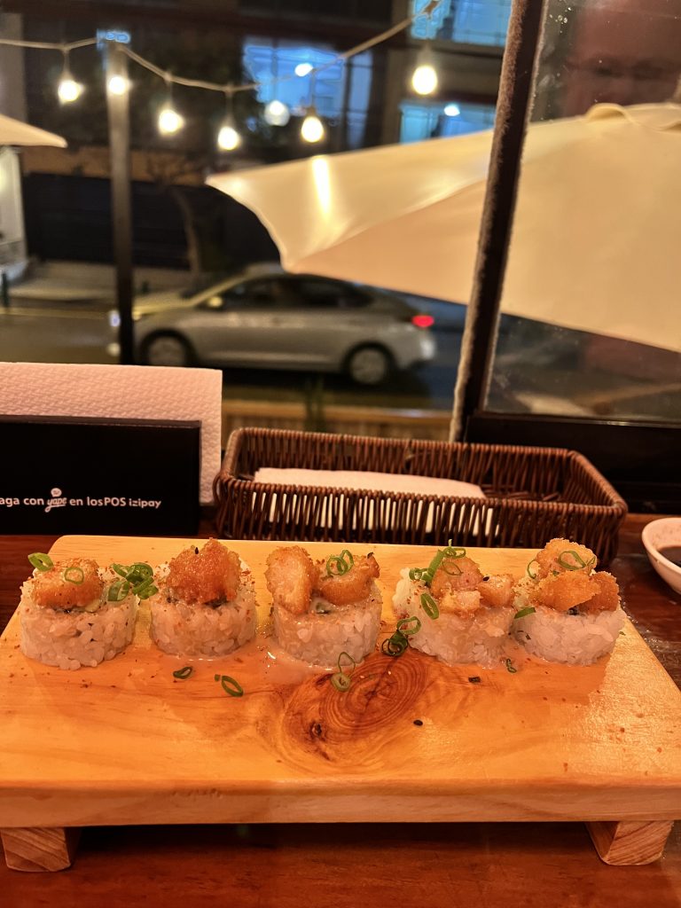 After the three-hour cooking class, I packed up the two dishes I made and had PJG try them—he thought they tasted pretty good. For dinner, we chose a Peruvian-Japanese fusion restaurant, a cuisine known as Nikkei. Similar to Chifa, the fusion of Peruvian and Chinese culinary traditions, Nikkei is the result of a blend between Peruvian and Japanese food cultures.
