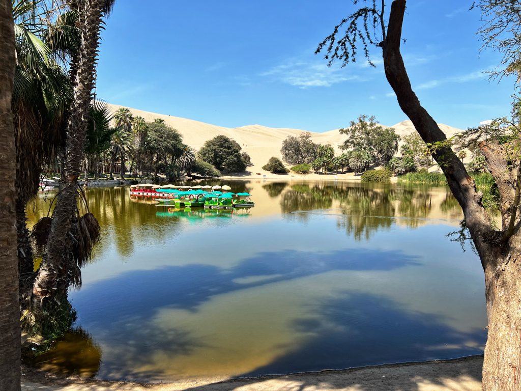 By 9 a.m., the air was already dry and hot, with the sun blazing over the lake’s surface. The surrounding quietness, coupled with the lack of people, gave the oasis an eerie, desolate feel. We returned to the hotel for a short break, during which I managed to write a bit of the travel journal. At 10:30, we took a small tuk-tuk to the Cruz del Sur bus station in Ica. After grabbing some snacks at the station, we boarded the 11:30 bus, which departed punctually. Thus ending our brief yet memorable desert oasis adventure.